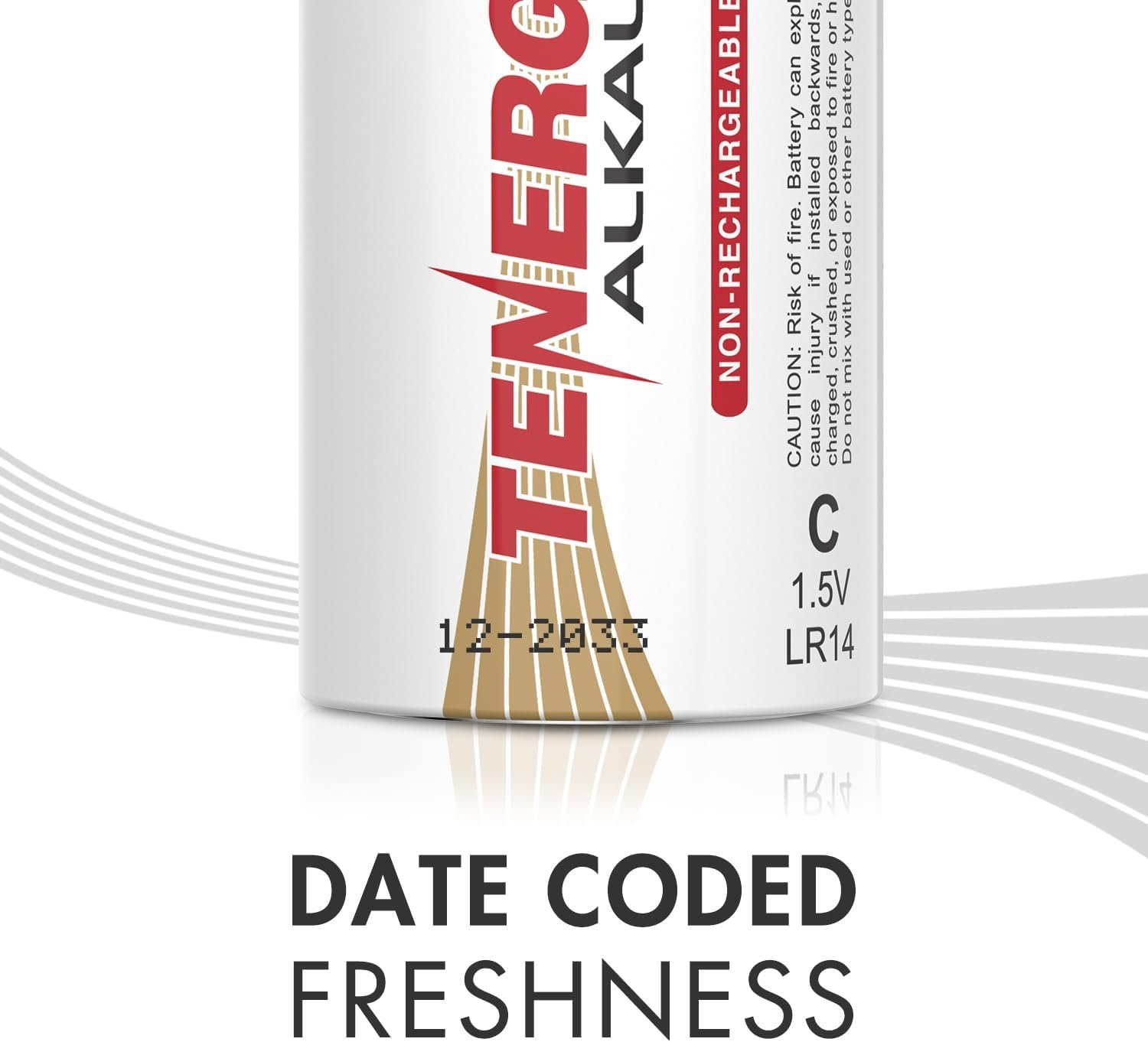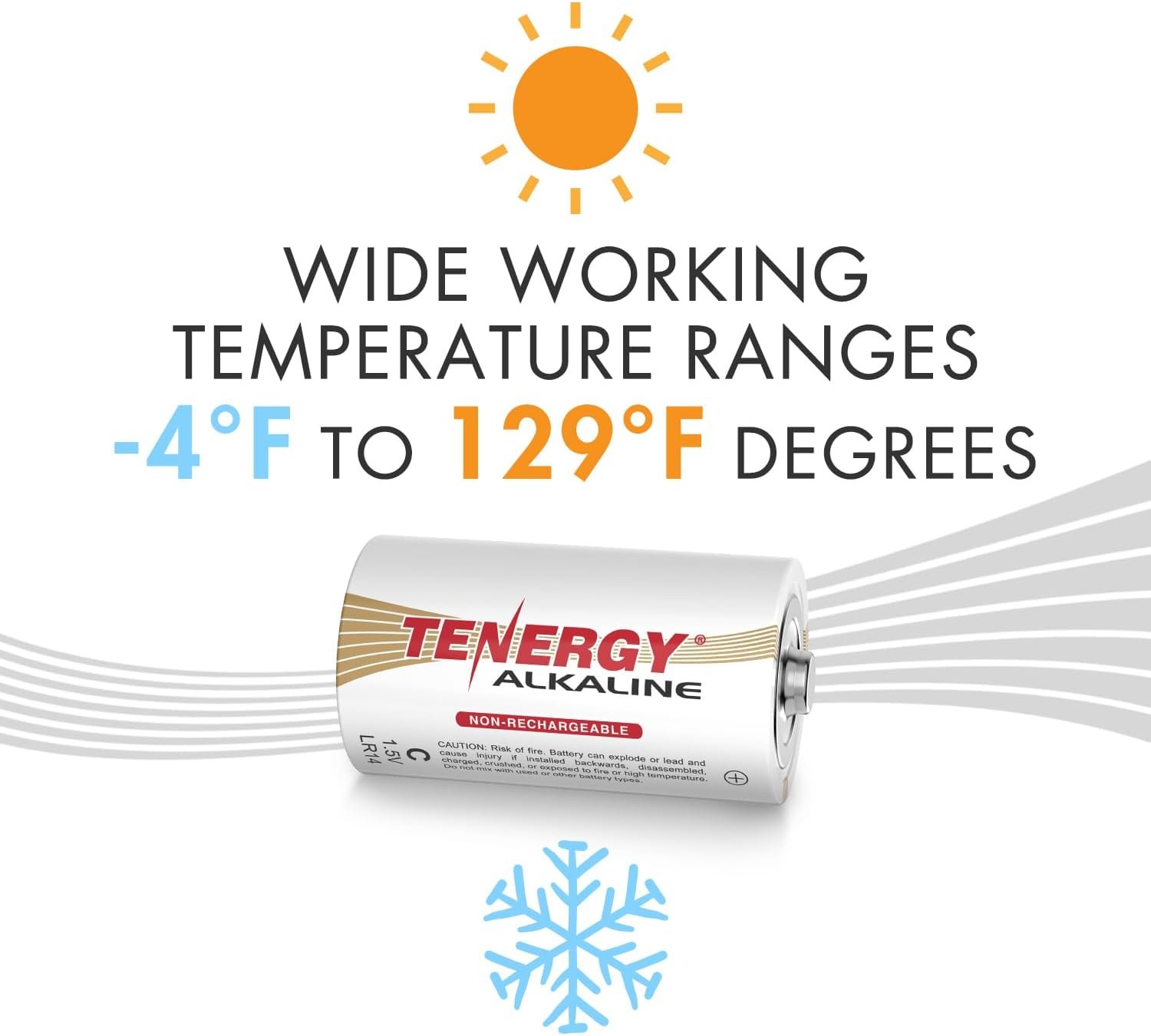 Tenergy 1.5V C Alkaline LR14 Battery, High Performance C Non-Rechargeable Batteries for Clocks, Remotes, Toys & Electronic Devices, Replacement C Cell Batteries, 24 Pack