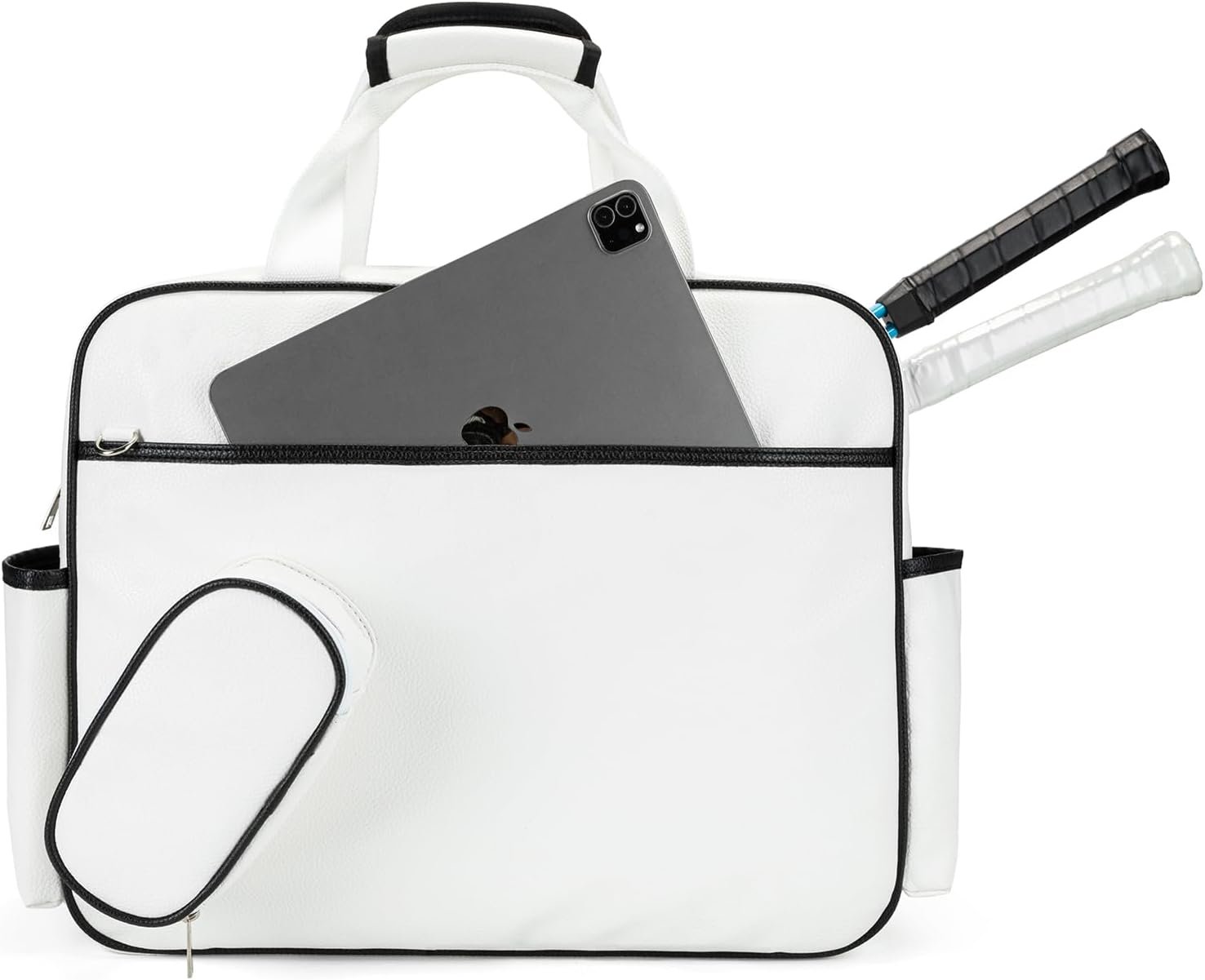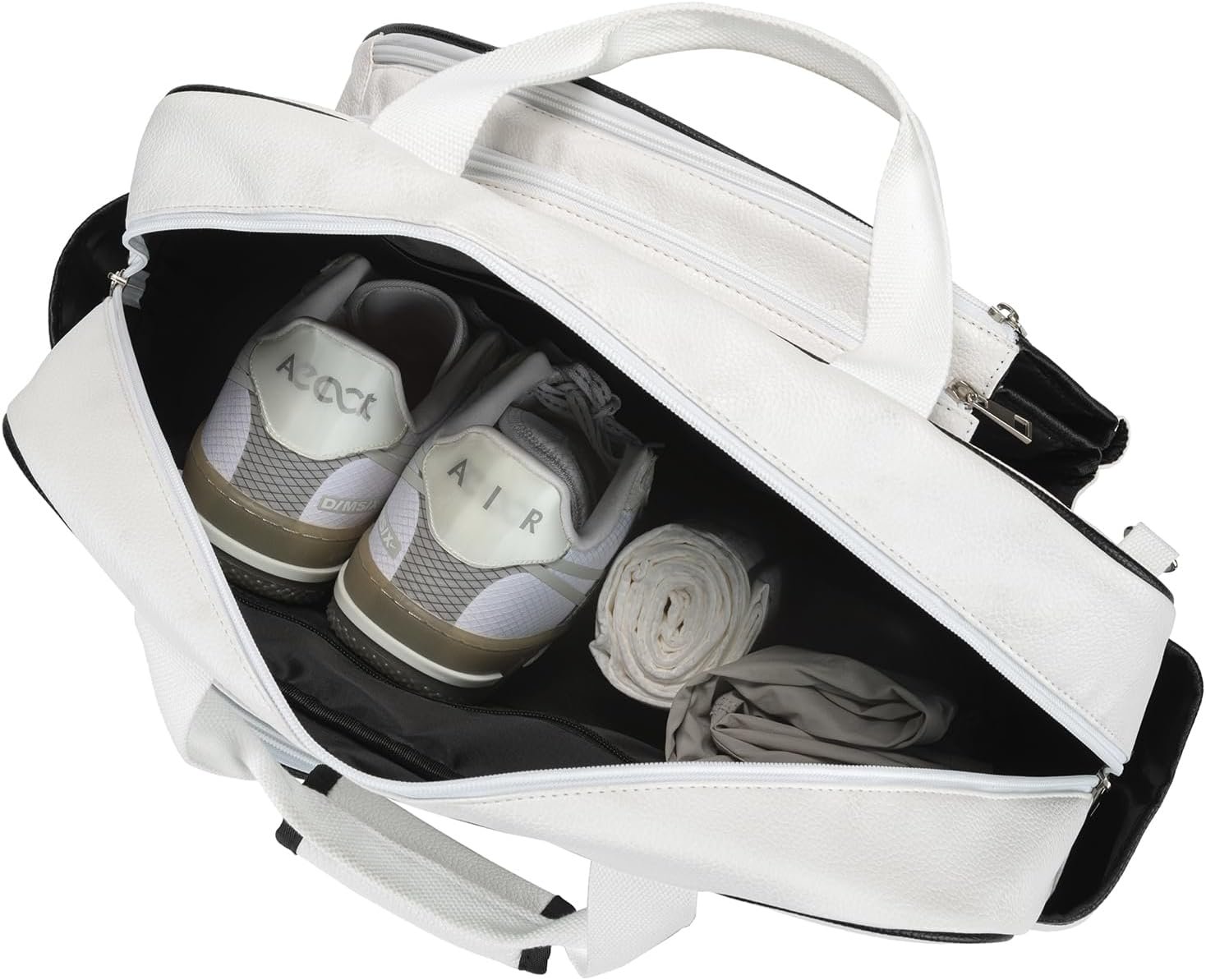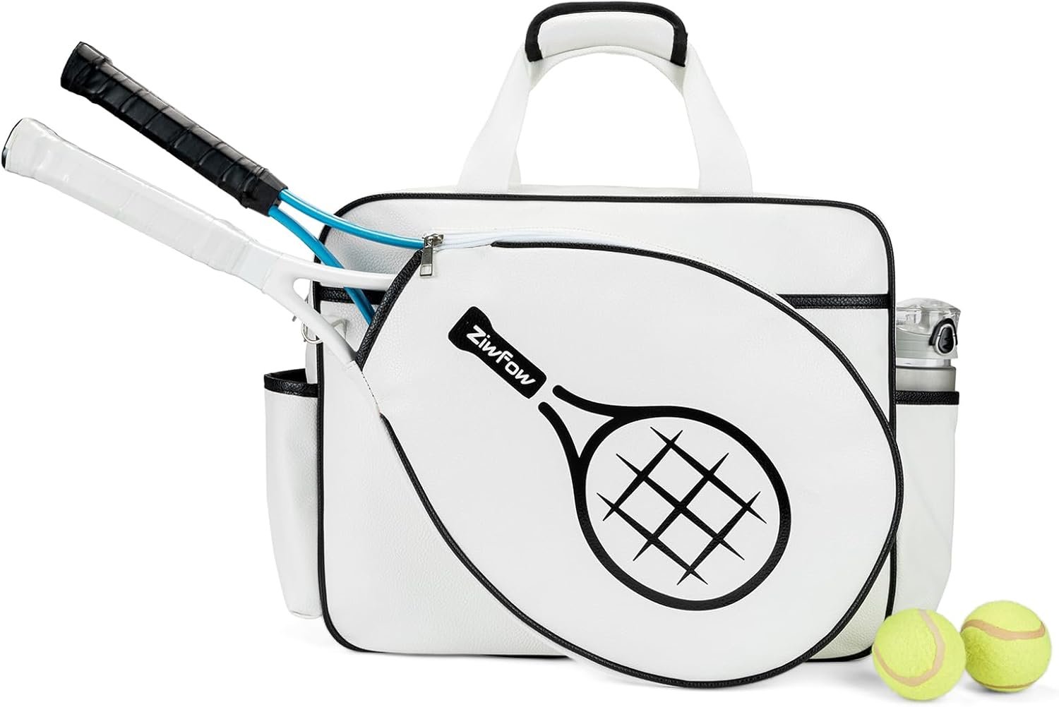 Tennis Bags Leather Tennis Racket Bag Women Tennis Tote Bag PU Sport Handbag Waterproof Lightweight Badminton Racket Shoulder Bag For 2 Rackets With Removable Shoulder Straps Outdoor