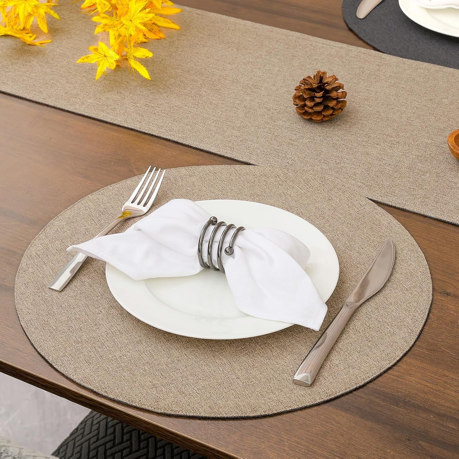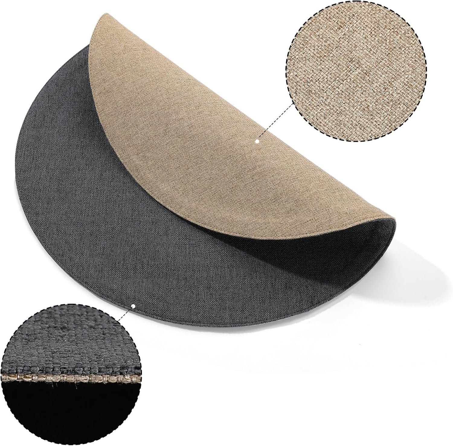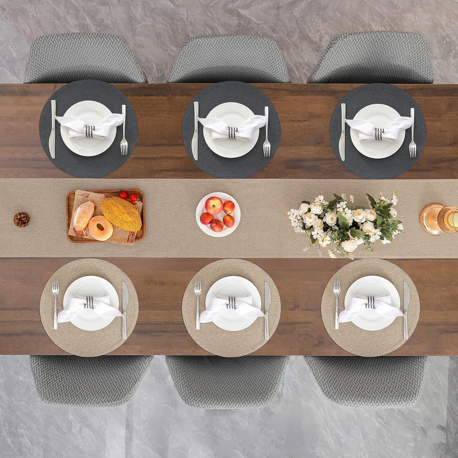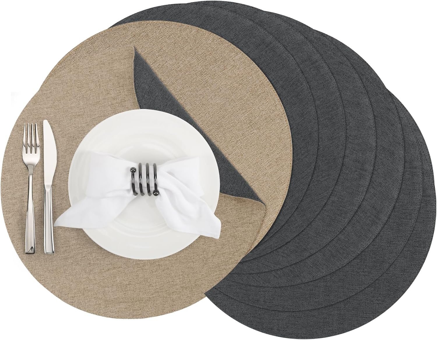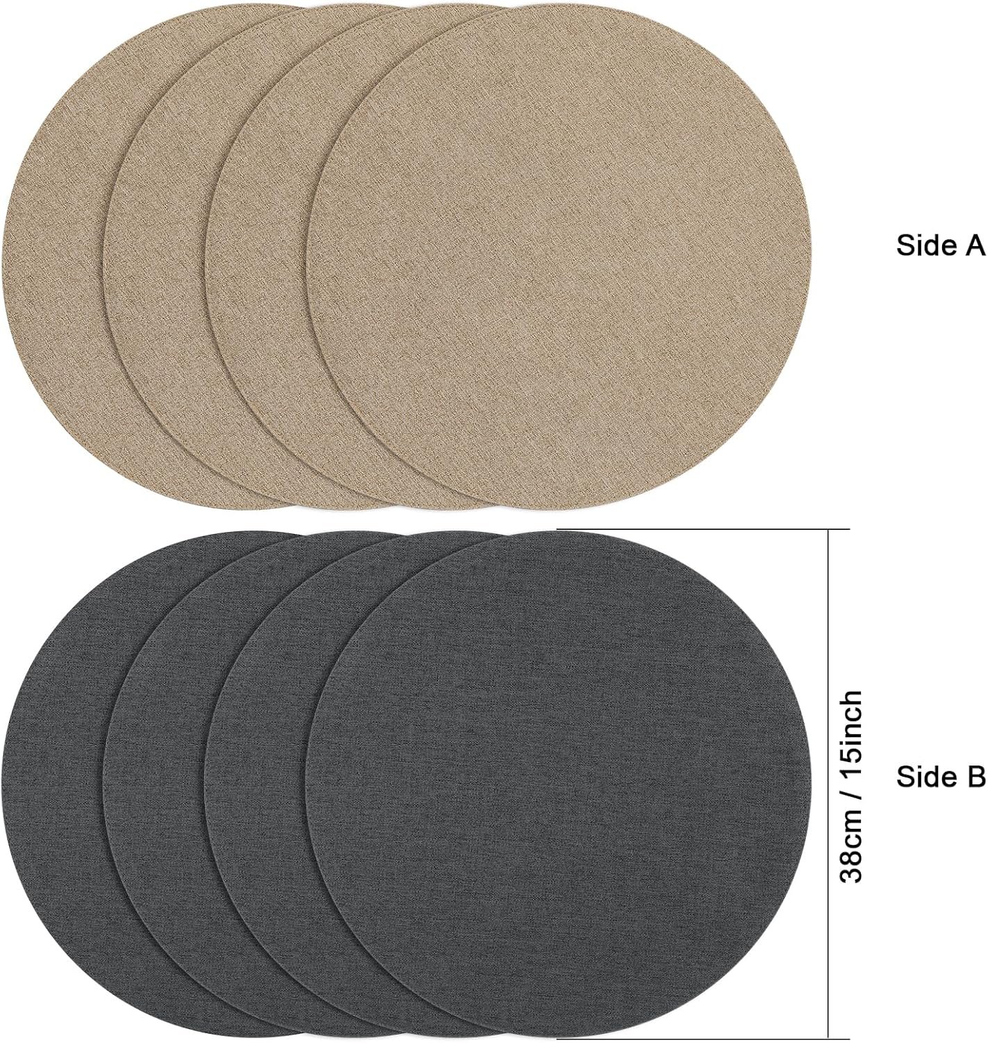 Textile Burlap Linen Placemats Dual-Sided Placemats Set of 8 Place Mats Non-Slip Washable Table Mats for Dining Table (Round, Grey-Light Brown)