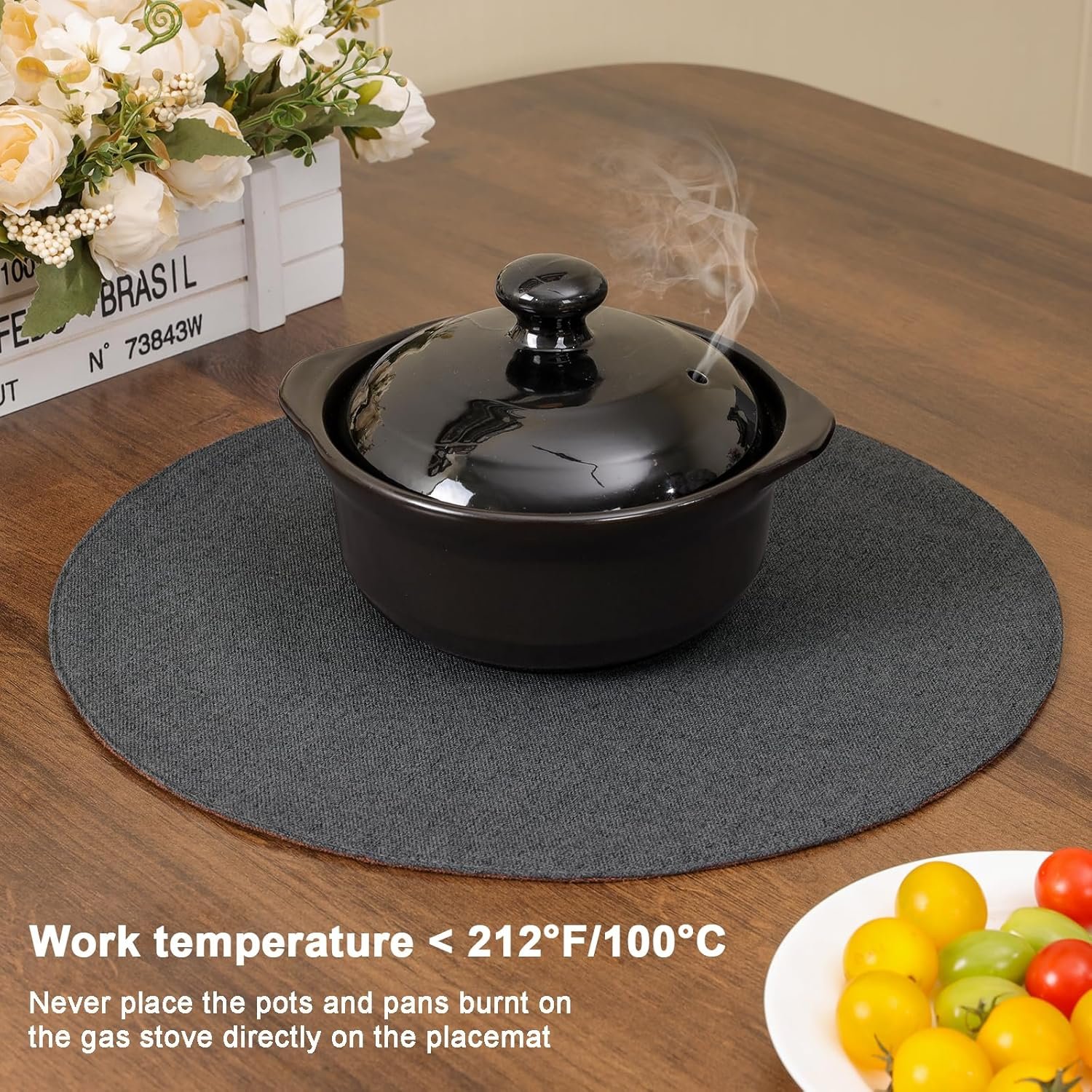 Placemats set: The highest temperature can withstand up to 158°F / 70°C. Please do not use it outside this temperature range.washable at 40° C.