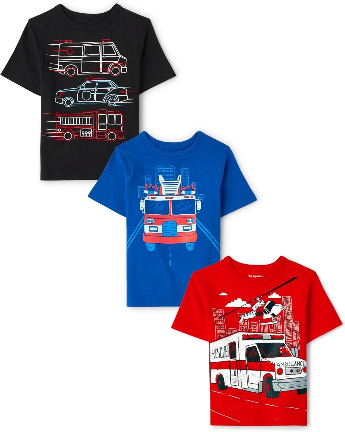 The Children’s Place Baby and Toddler Boys’ Vehicle Short Sleeve Graphic T-Shirts, Multipack