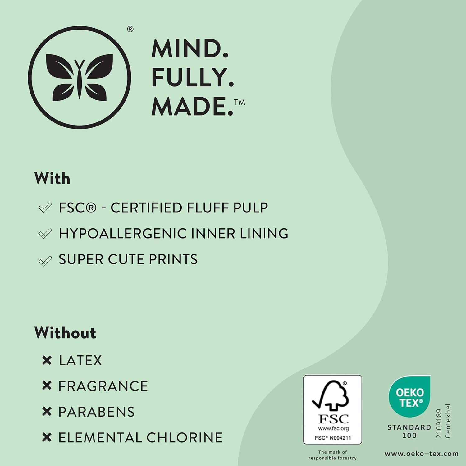 Our most earth conscious Diapers yet made with a plant-based backsheet, advanced absorption, enhanced blowout protection, a wetness indicator for less guessing, hypoallergenic inner lining, cloud-like comfort fit and free of latex, fragrance, and parabens