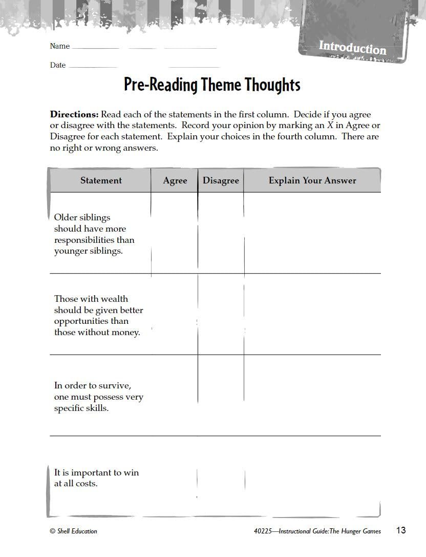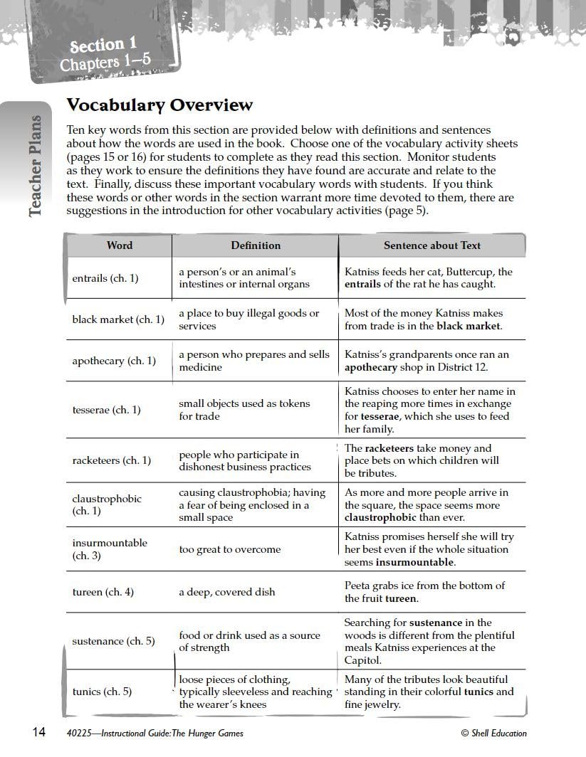 The Hunger Games: An Instructional Guide for Literature provides lesson plans and activities for this popular Young Adult fiction novel. This valuable resource guides teachers with ways to add rigor with complex literature. Text-dependent questions help students analyze the text with higher-order thinking skills, with lessons focused on story elements, vocabulary, and more. Close reading activities throughout the literature units encourages students to use textual evidence as they revisit passages to respond more critically. With various methods of assessing comprehension, this instructional guide offers strategies for cross-curricular activities as students build a greater understanding of this great literary work.