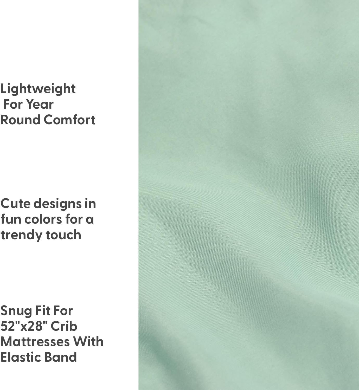 Universal Fit: Designed with a snug elastic band, these infant crib sheets securely fit 52″x28″ crib mattresses, staying in place without slipping or bunching for added safety.