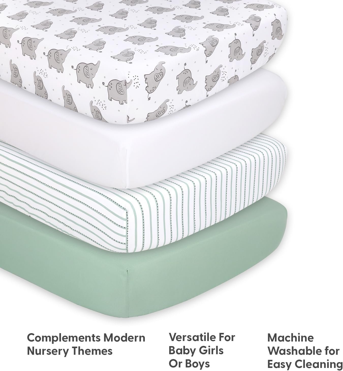 The Peanutshell 4-Pack Fitted Crib Sheet Set – Super Soft & Breathable Baby Girl or Boy Crib Sheets, Nursery Decor, Fit for Standard Mattress Cover- Elephant