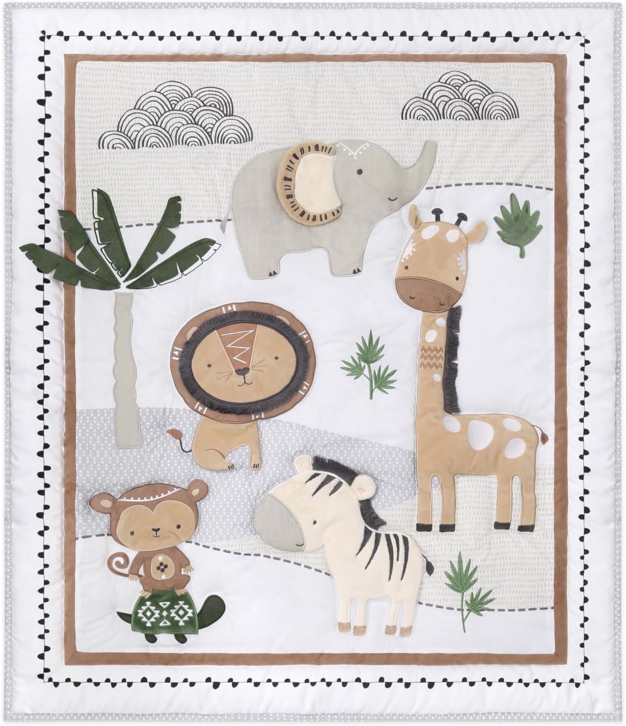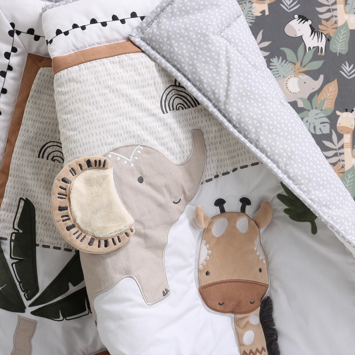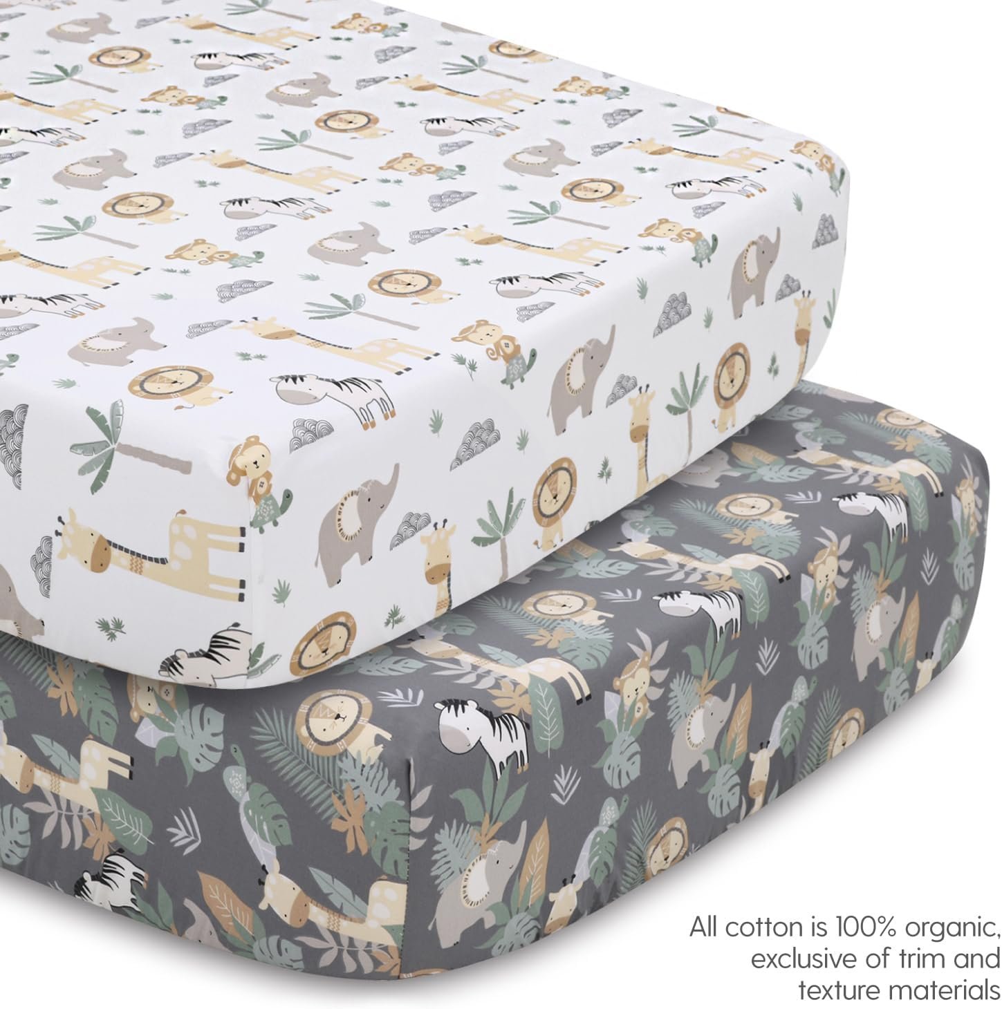 The Peanutshell 4 Piece Organic Cotton Baby Crib Bedding Set for Boys & Girls – Newborn, Infant & Toddler Nursery Bed Set Decor with Two Crib Sheets, Dust Ruffle Comforter – Safari Serenity