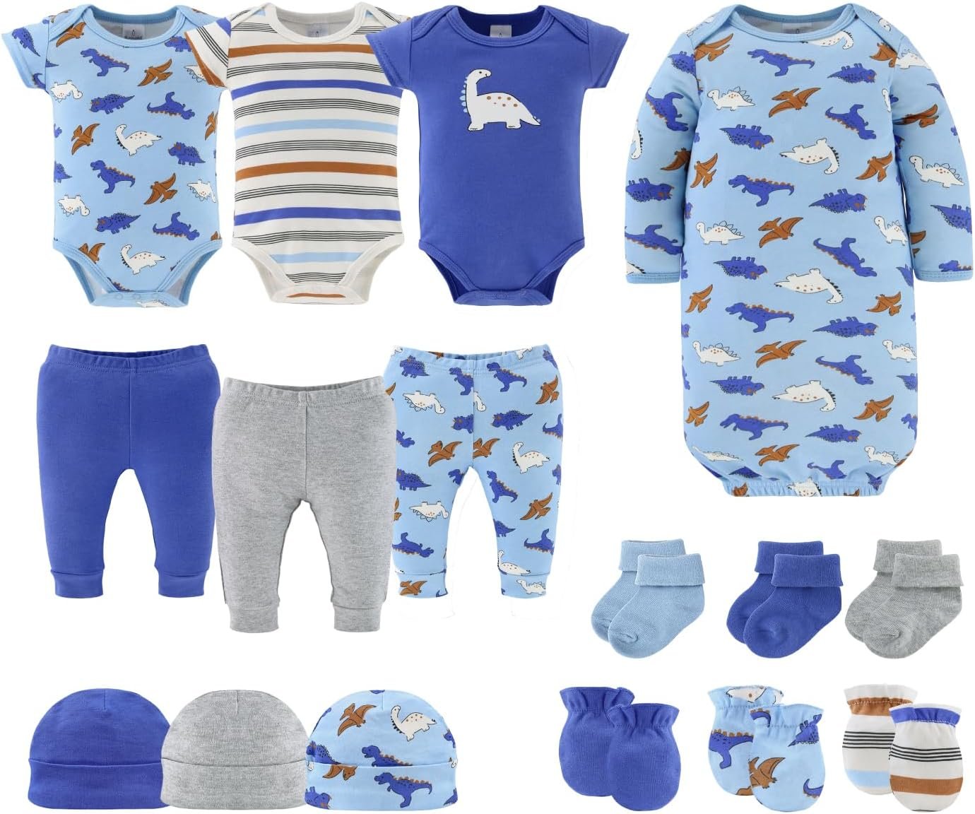 The Peanutshell Baby Layette Gift Set for Boys – 16 Piece New Born Boy Gift Set, Baby Clothes & Newborn Essentials Must Haves – Newborn Clothes 0-3 Months – Blue Dino