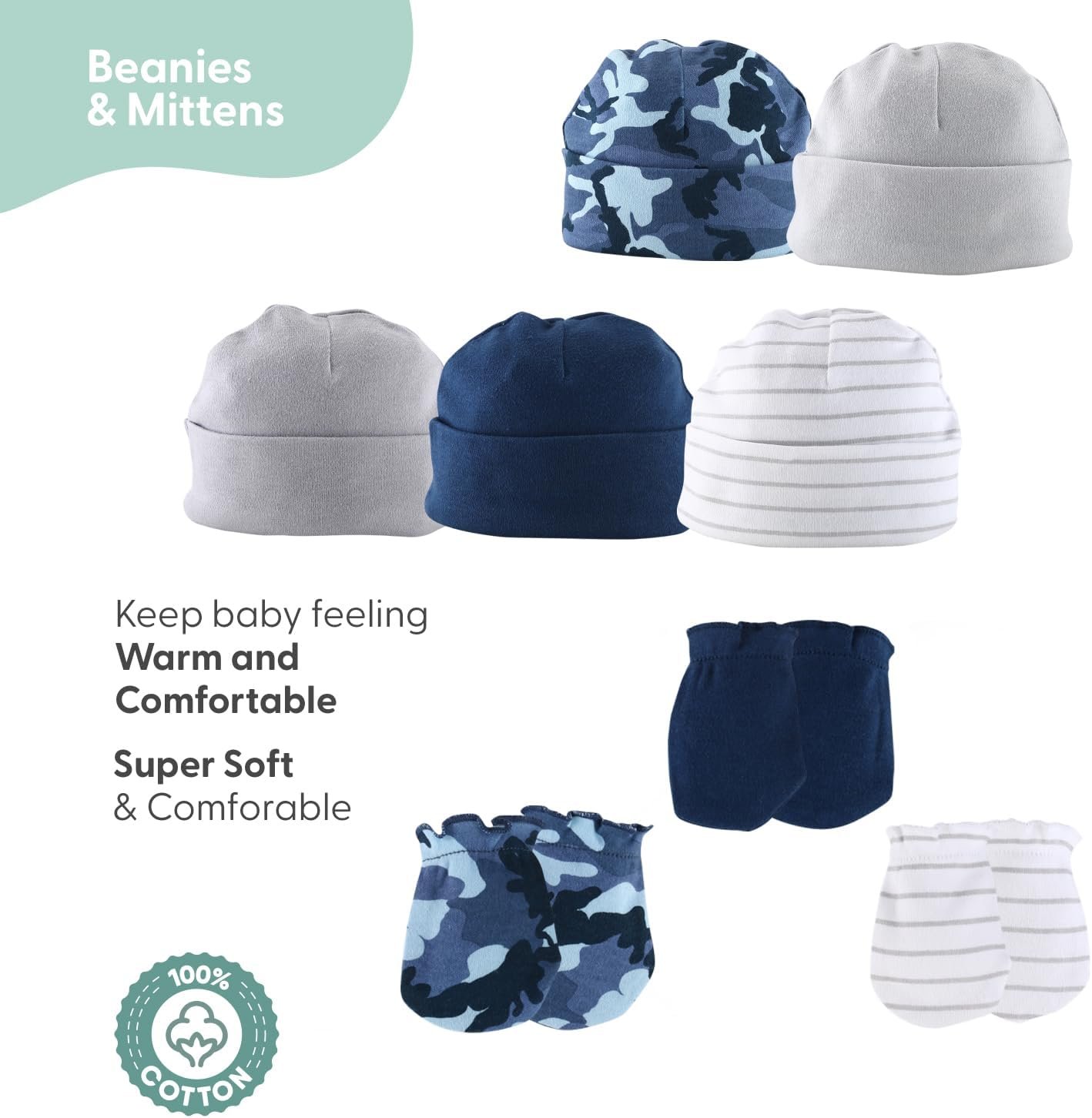 The Peanutshell Baby Layette Gift Set for Boys – 23 Piece New Born Boy Gift Set, Baby Clothes & Newborn Essentials Must Haves – Newborn Clothes 0-3 Months – Blue Camo