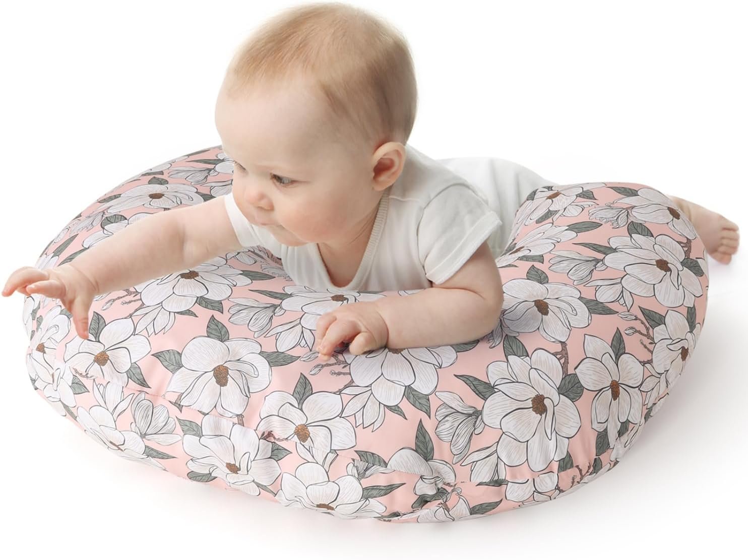 The Peanutshell Nursing Pillow & Cover – Soft Newborn Nursing Baby Girl Pillow Covers, Supportive & Comfortable Breastfeeding, Tummy Time Baby Essentials – Magnolia