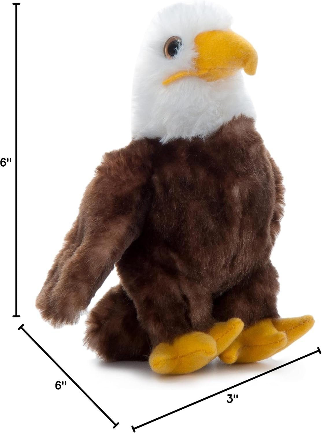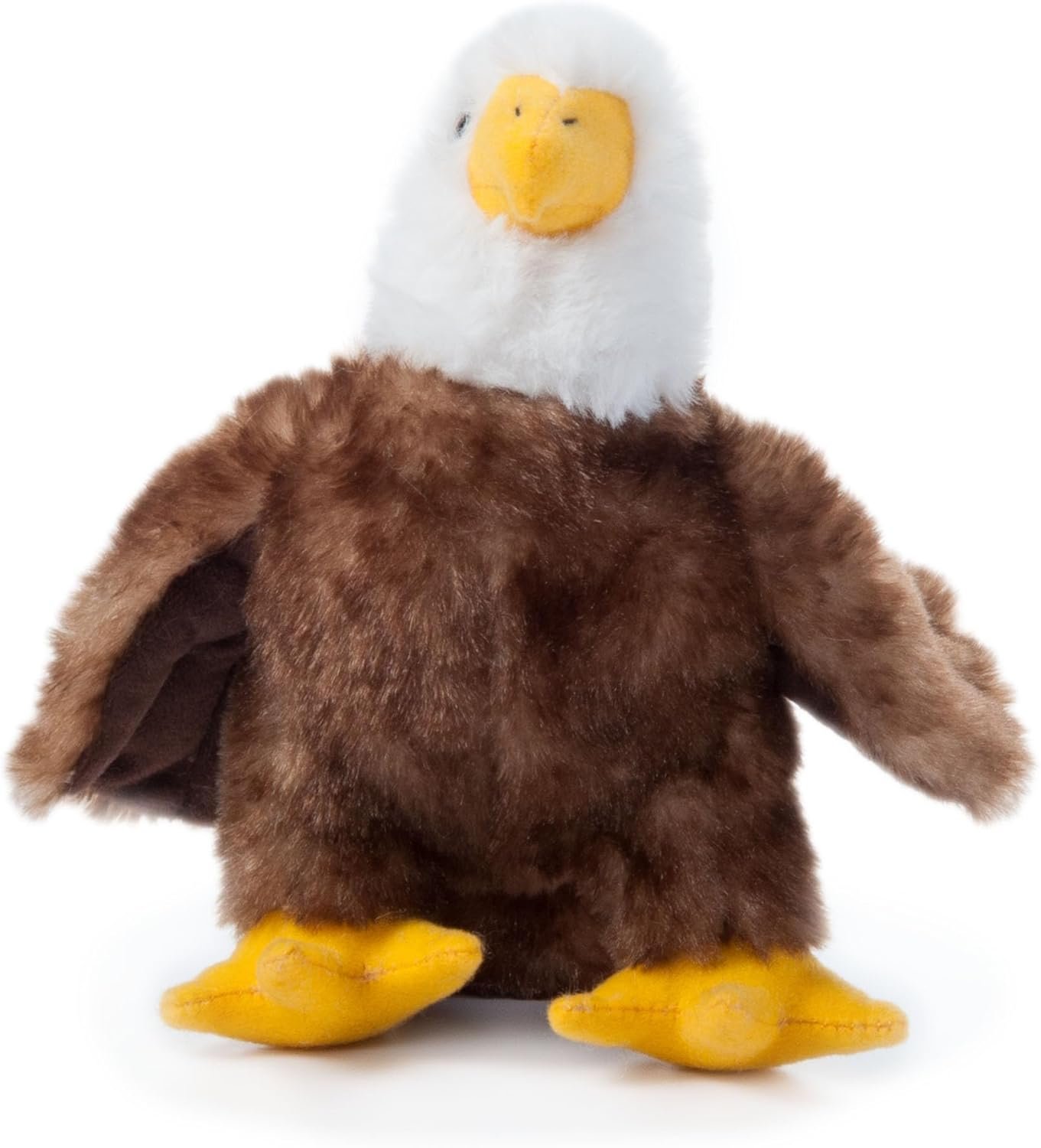 Soar into adventure with this toddler toy and realistic stuffed animal bald eagle with outstretched wings and a standing stance.