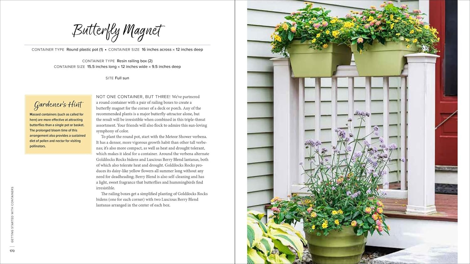 There are an additional twenty-five container recipes that add color and pizzazz to gardens of all sizes—even on balconies and patios. The creative combinations include holiday themes, solutions for shade and other concerns, poolside ideas, and much more.