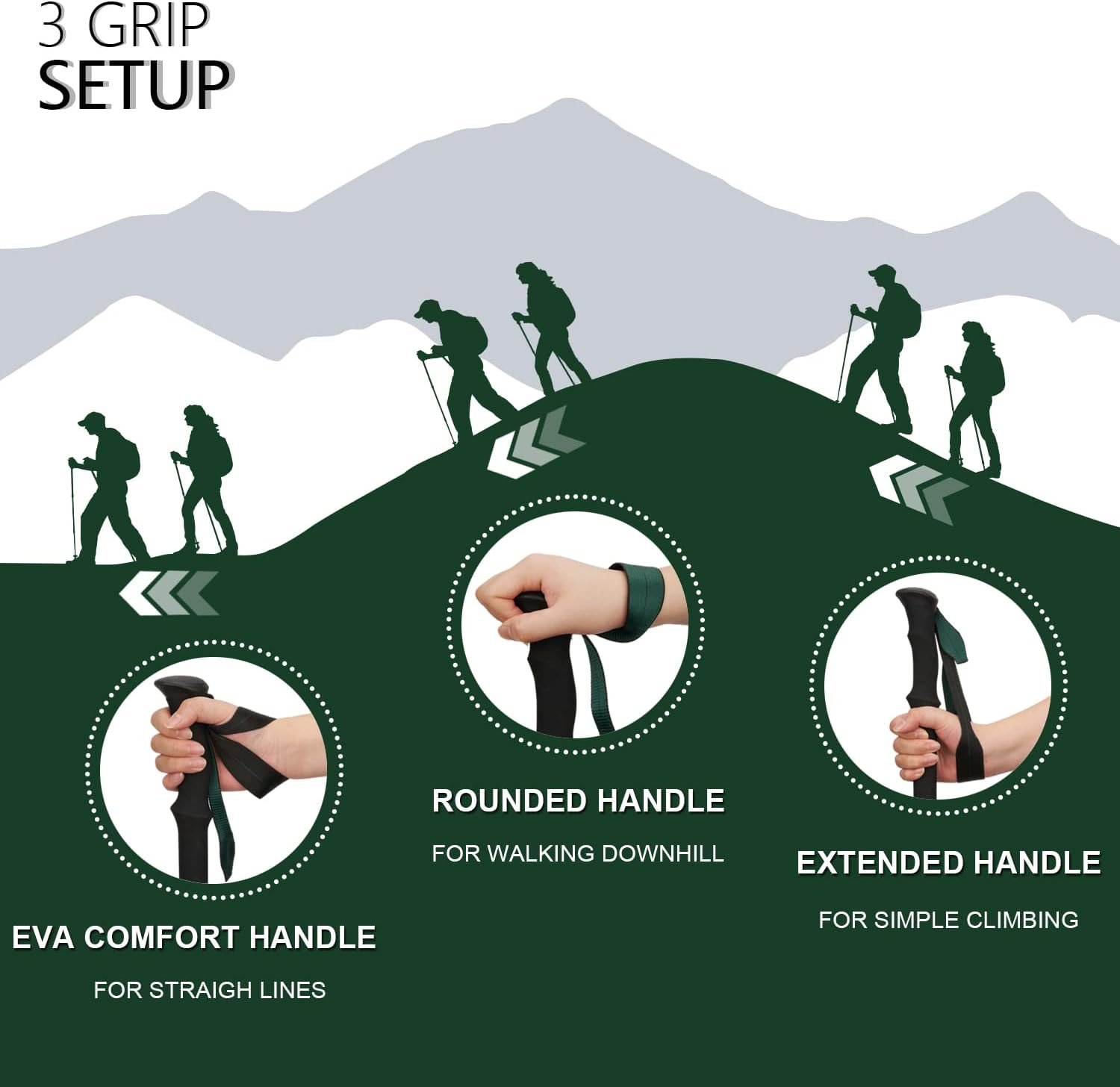 Details Matter in Success: Extended ergonomic EVA foam handle precisely accommodates your palm, absorbs sweat, anti-slip, and keeps your hands comfortable throughout your hike. It offers you more options in switchbacks or abrupt changes in terrain. The adjustable wrist straps allow you to release your grip on the handle, which in turn reduces possible soreness to your palms