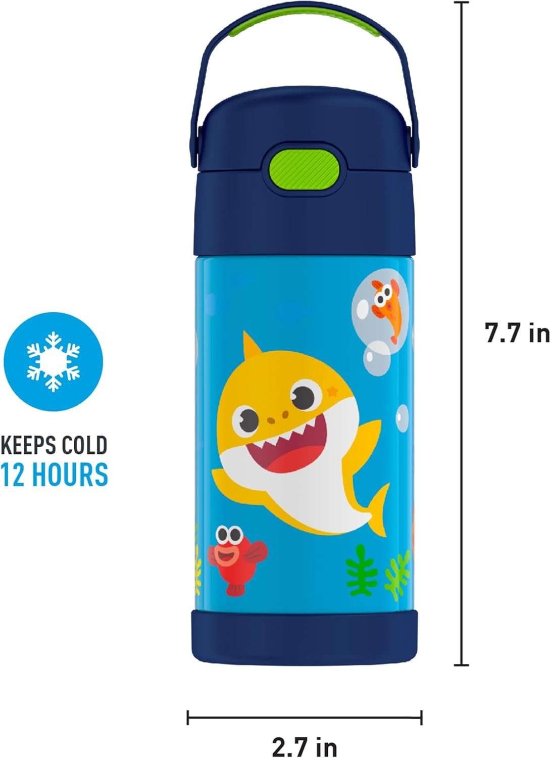 THERMOS FUNTAINER Water Bottle with Straw – 12 Ounce – Kids Stainless Steel Vacuum Insulated Water Bottle with Lid, Baby Shark