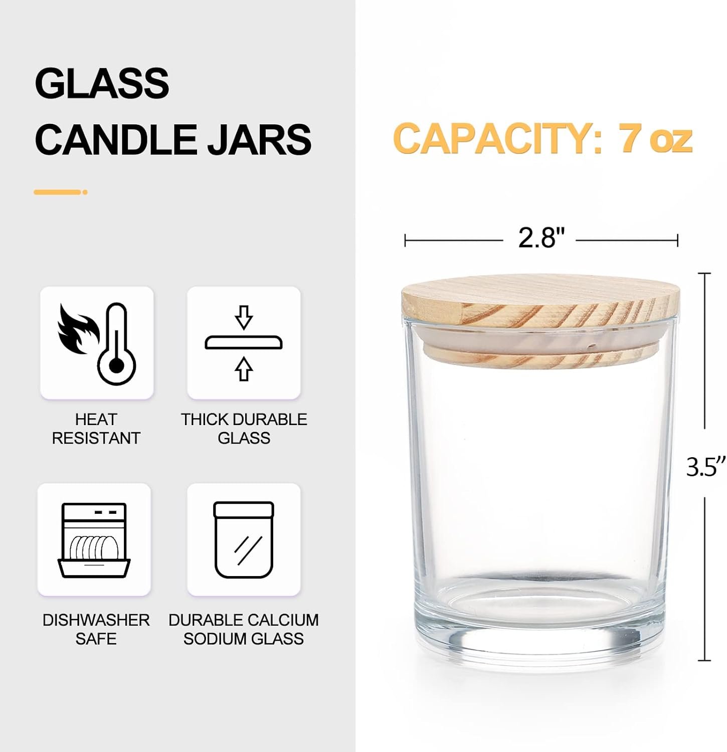 Thick Candle Jars for Making Candles 12 Pcs, 7 OZ Empty Jars with Wood Lids for Candle Making, Sample Container, Clear