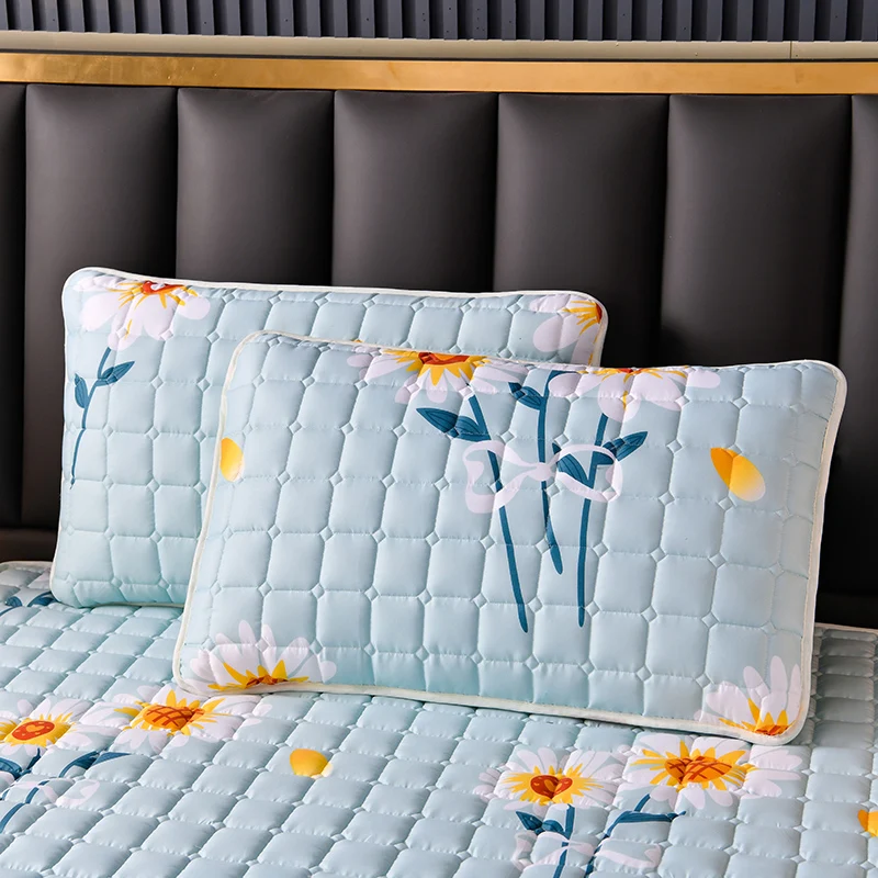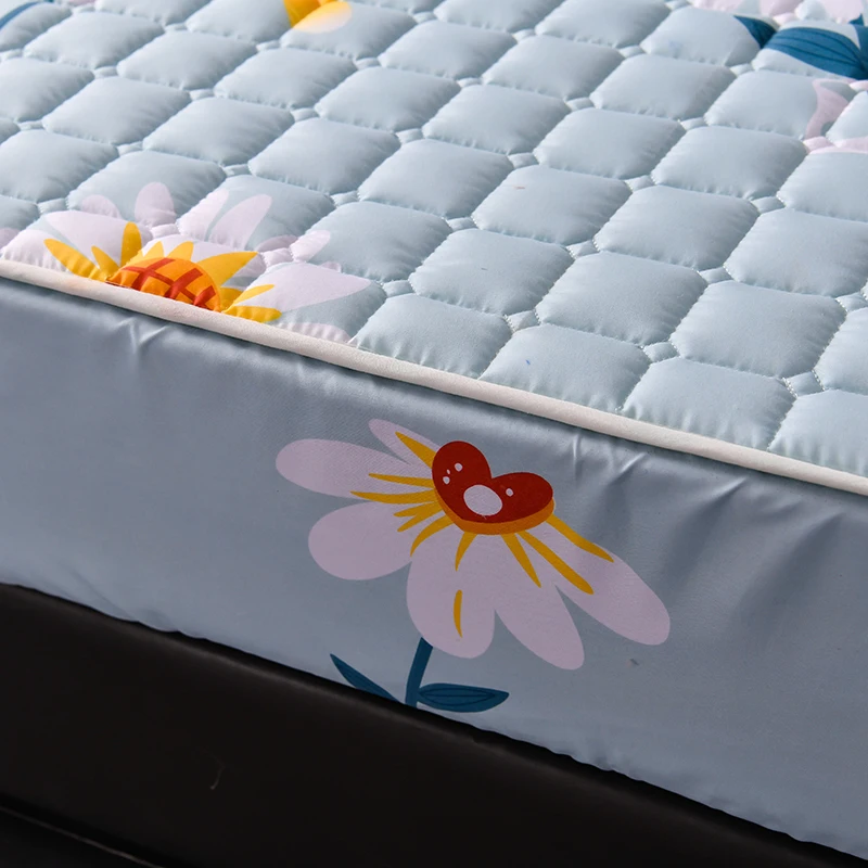 Thickened Quilted Mattress Cover Thickened Pad Breathable Soft Bed Cover Bed Linen Elastic Fitted Sheet for Queen King Beds