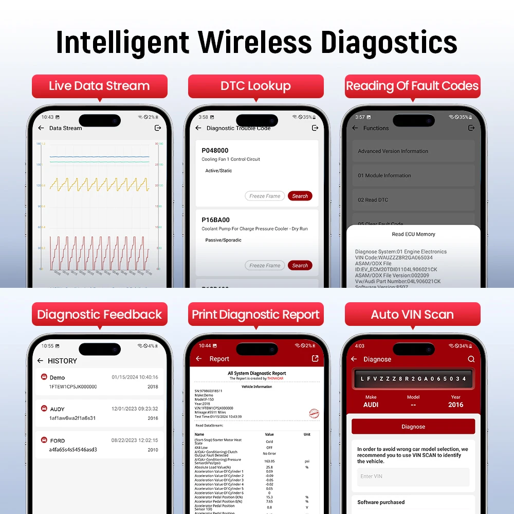 THINKCAR BD6 OBD2 Diagnostic Tool is suitable for Mobile phones,tablet computer that meet the above version information.When the adapter is connected to the car,you only need to detect and diagnose your vehicle through the mobile phone’s Bluetooth 4.2 and APP.It is suitable for most DIY car owners and maintenance and repair car stores on the market.