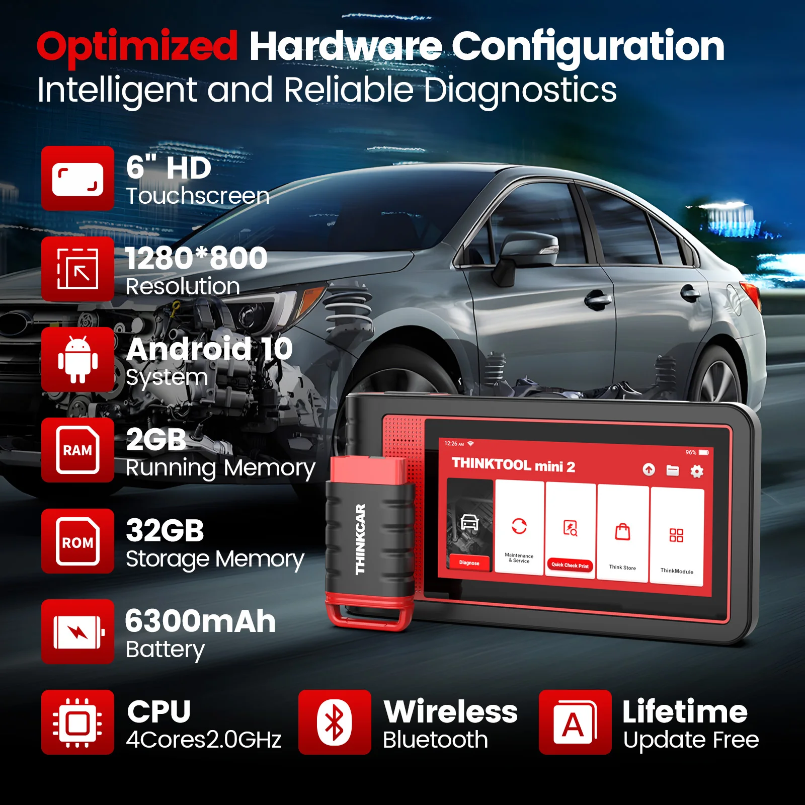 THINKCAR THINKTOOL MINI 2 CANFD Auto Car Diagnostic Tools Obd2 Scanner Bi-directional Scan Tool 28 Resets Full System Diagnose