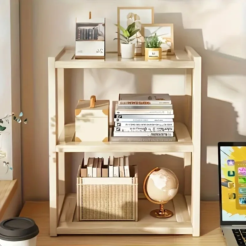 Three Layers Stationery Organizer Practical Wooden Storage Desk File Rack Office Accessories School Supplies