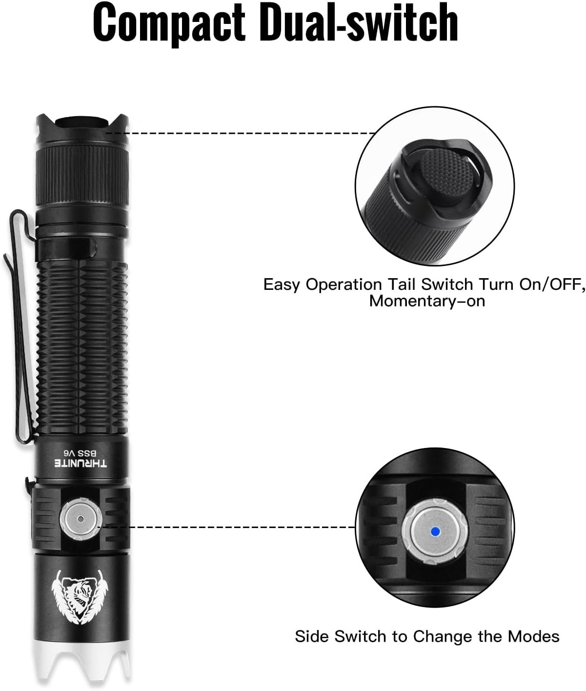 ThruNite BSS V6 Tactical Flashlight with More Safe and Easier Dual Switch BSS V6 rechargeable lightBSS V6 rechargeable light