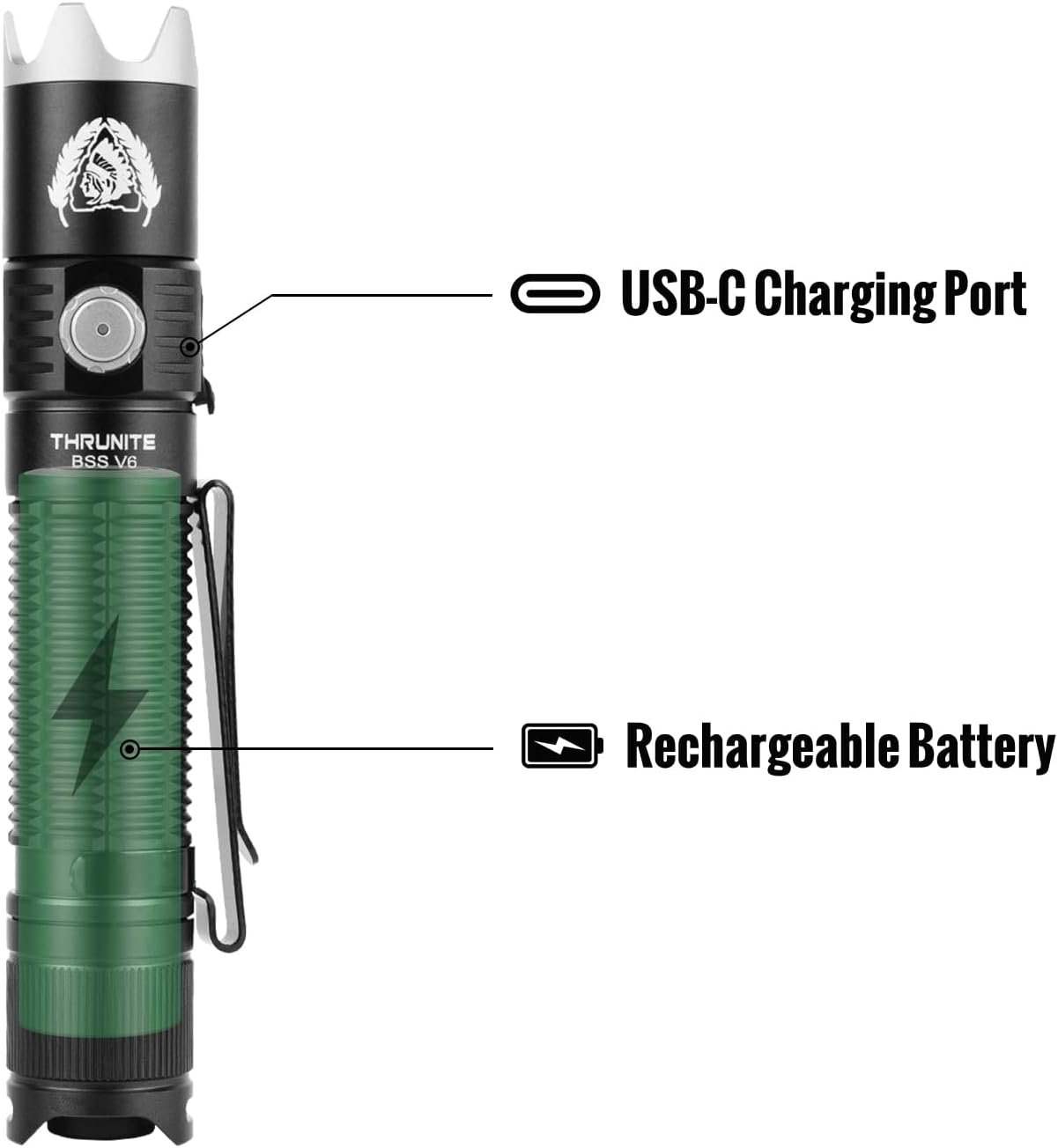 ThruNite BSS V6 Black Scout Survival Customized Edition EDC Flashlight, USB-C Rechargeable LED Flashlight, High 2000 Lumens, 6 Light Modes, Dual Switches Bright Flashlights, Black – CW