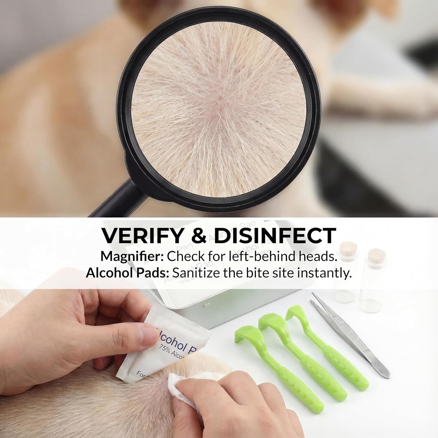 LAB-READY SPECIMEN STORAGE VIALS – The immediate fear after a bite is: “Does this tick carry disease?” Unlike basic tools, our kit includes 2 glass storage vials with corks. Securely preserve the removed tick to send to a laboratory for Lyme disease or Rocky Mountain Spotted Fever testing. This proactive step provides peace of mind for pet owners and parents.