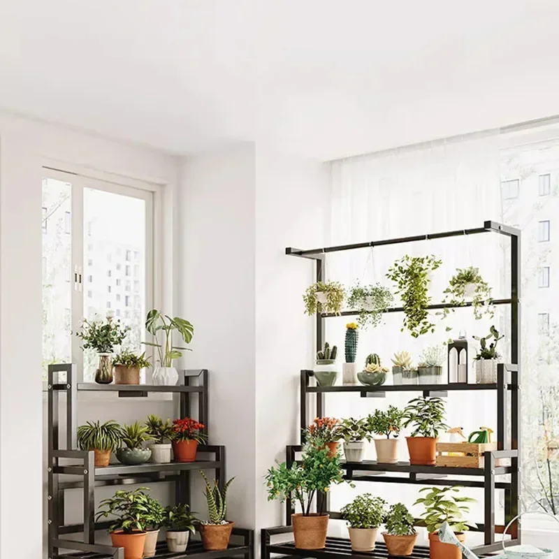 Tiered Display Plant Rack Shelf Universal Outdoor Metal Square Plant Rack Shelf Luxury Black Plantenrek Balcony Furniture