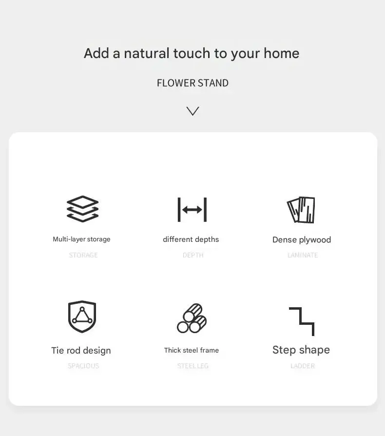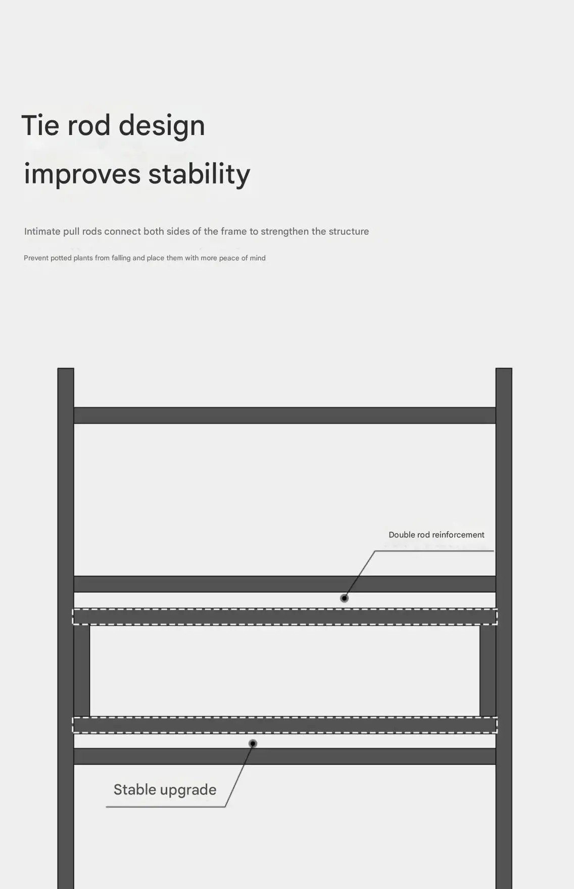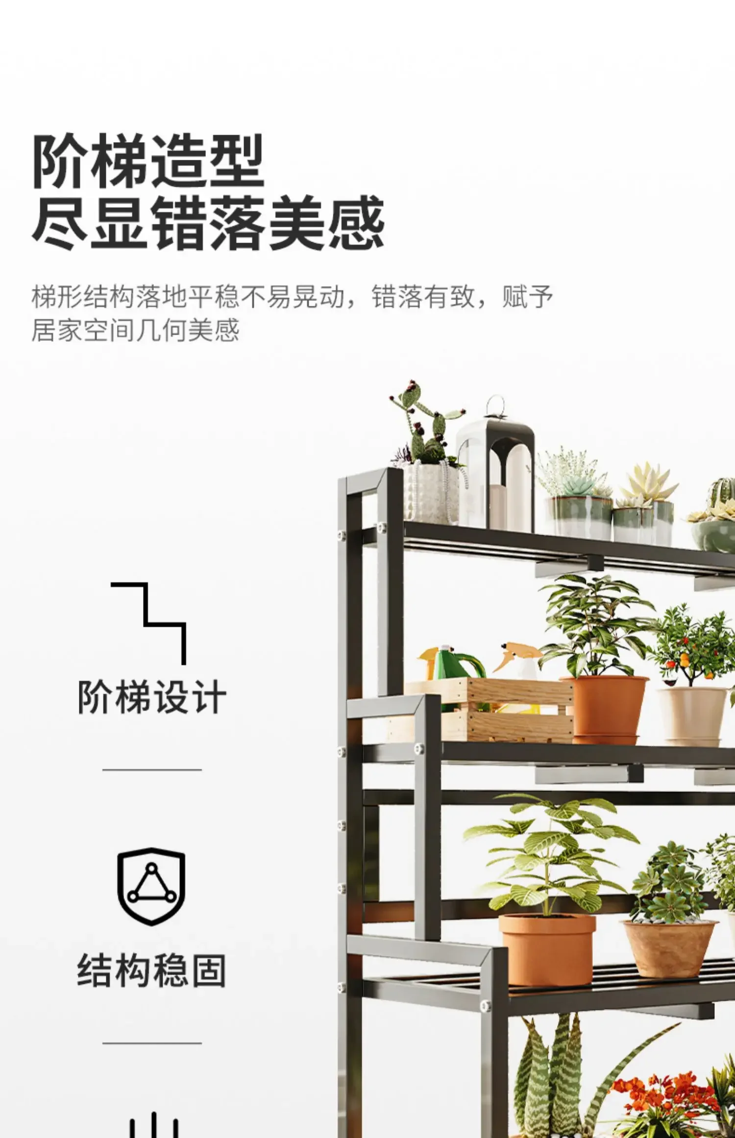 It’s quite heavy, the quality is quite good, and it’s good that there is a place to put the flowerpot at home after the shelf. It’s smooth, fine, firm, stable and very strong, and it’s very stable when you put the flowerpot on it. It’s intuitive, tall, beautiful and saves space.