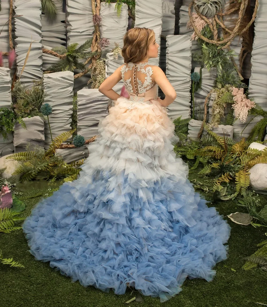 Tiered Tulle Flower Girl Dresses For Wedding With Detachable Train High Low Toddler Girls Pageant Dress Kids Party Ball Gown