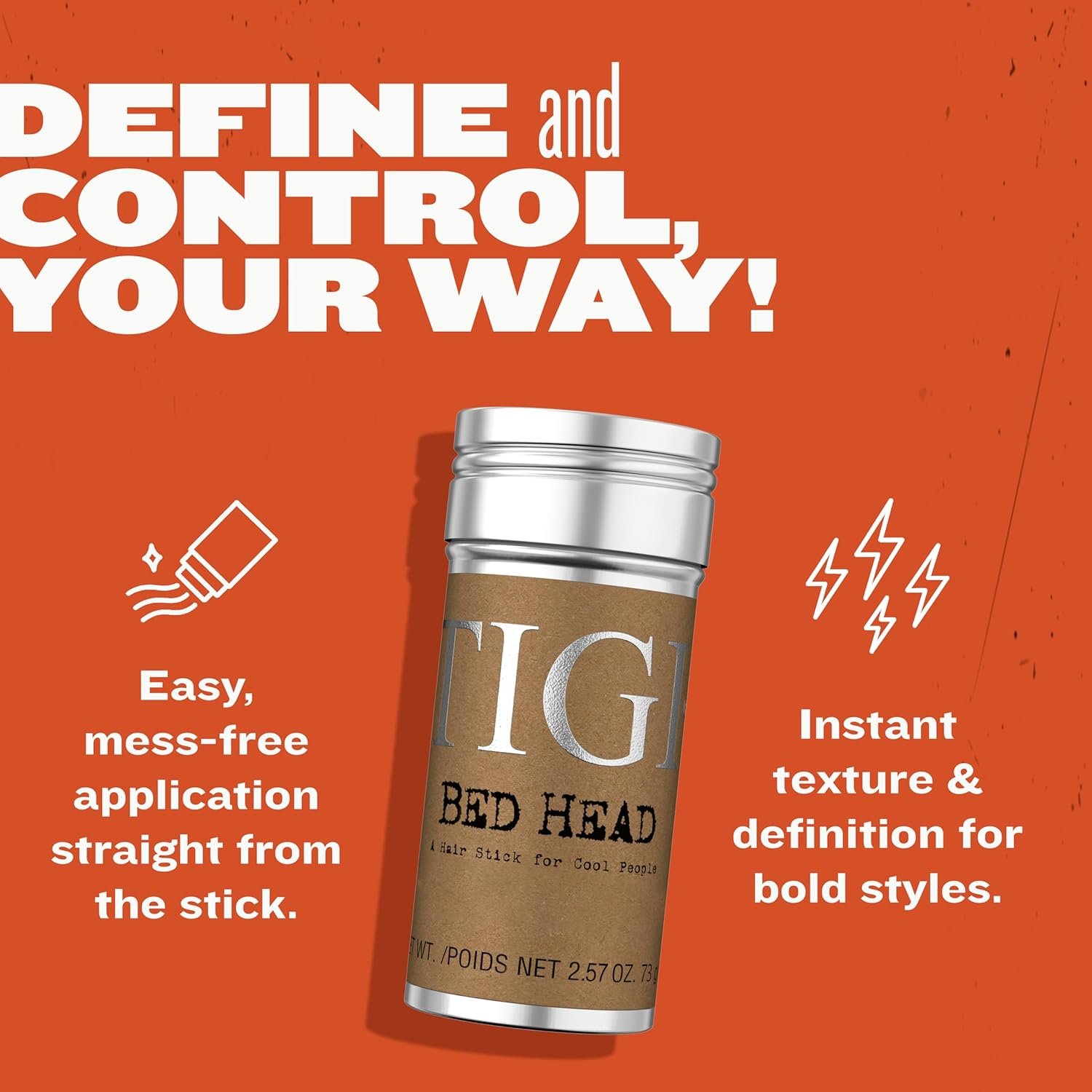 It’s the product that started it all for Bed Head! Formulated with beeswax and Japan wax, Bed Head’s Hair Wax Stick creates instant texture and control and is also great for sleek buns and ponytails. With a hold level of 4/5, this hair styling product adds pliable hold with a semi-matte finish, giving you the control you need to keep your hair in check all day long. It’s perfect for all hair lengths and easy to work in and wash out, so you can create your favorite style with no mess. Our defining paste uses castor oil to condition hair, leaving it smooth and frizz free while leaving a fresh and aromatic fragrance with notes of lavender, coriander, warm cedar and white musk. How to use: For short hairstyles, apply directly to the hair in circles for a fun, ruffled texture. For ponytails, use it to push down flyaways and seal the hair down for a sleek wet look with great shine. To tackle flyaways, apply onto your fingers and push through the hair. For a separated, fun look, use your fingers to piece it through updos or braids. If needed, use a hairdryer to gently heat up the wax before applying for a smoother application.