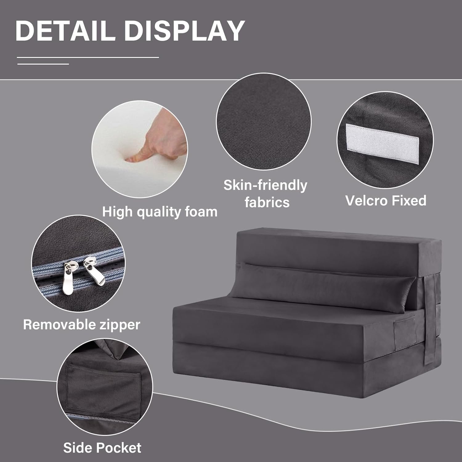 Removable Cover & Zipper Design: This sofa bed mattress comes with a removable and washable cover for hassle-free cleaning (gentle cycle). Equipped with a side pocket for storing items like phones and books, providing ample storage space. Magic stickers on the sides help maintain the desired shape