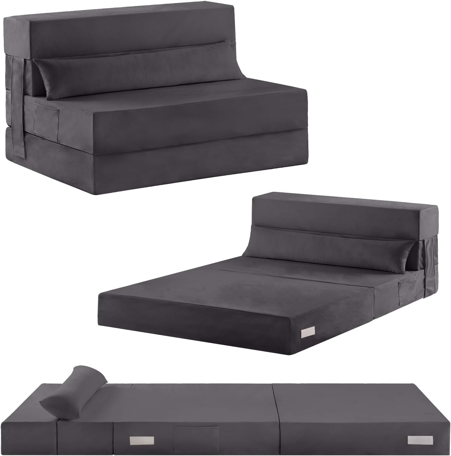 Tiita Folding Sofa Bed Couch, Twin Size Foldable Futon Chair Bed with Pillow, Folding Sleeper Sofa Chair Bed Floor Mattress for Guest Room, Living Room, Dark Grey