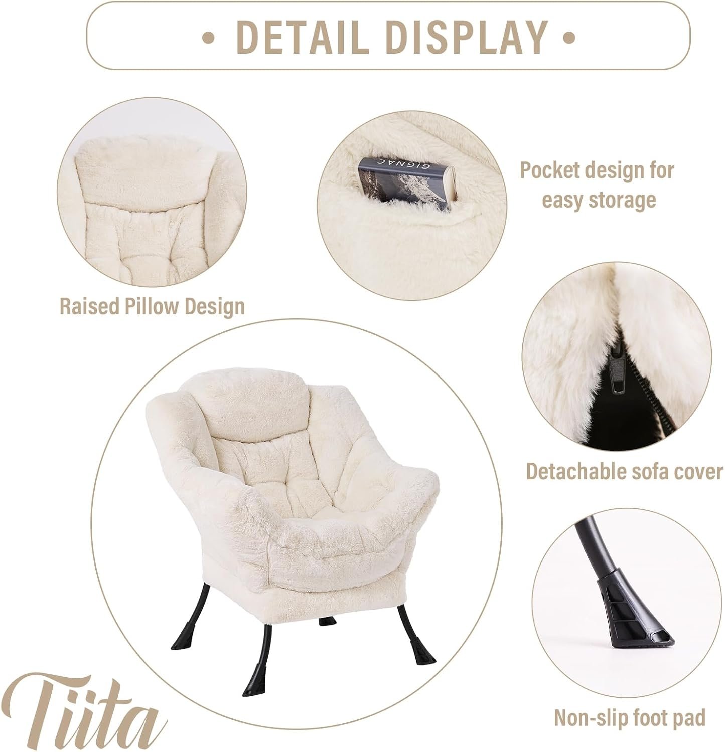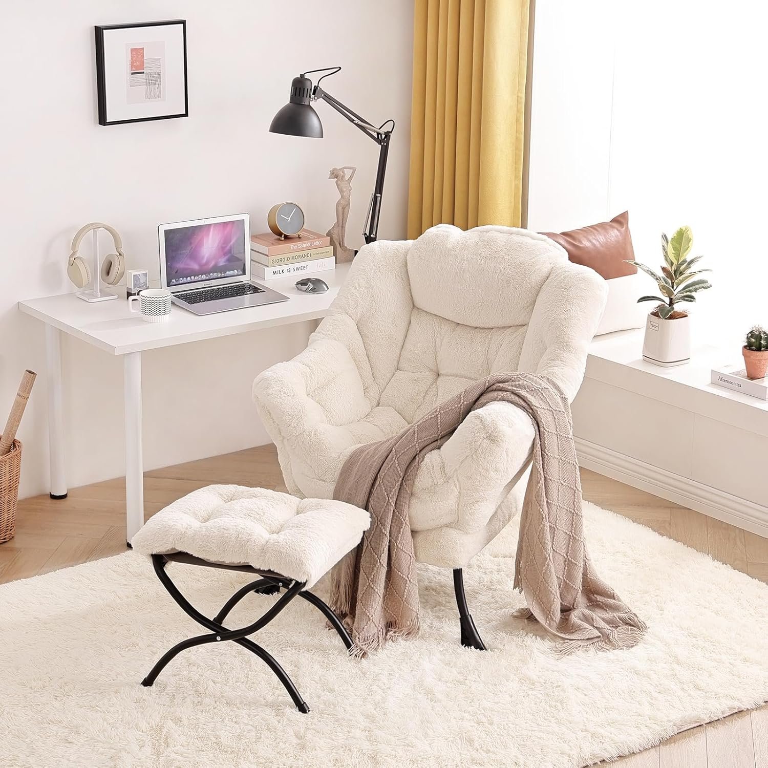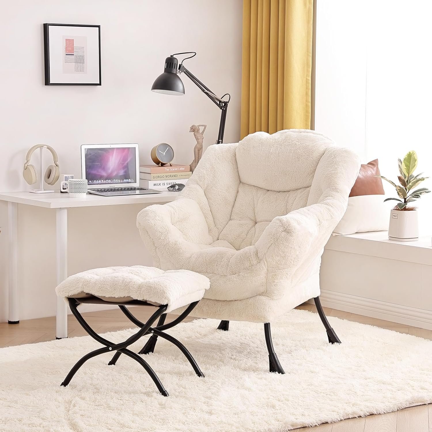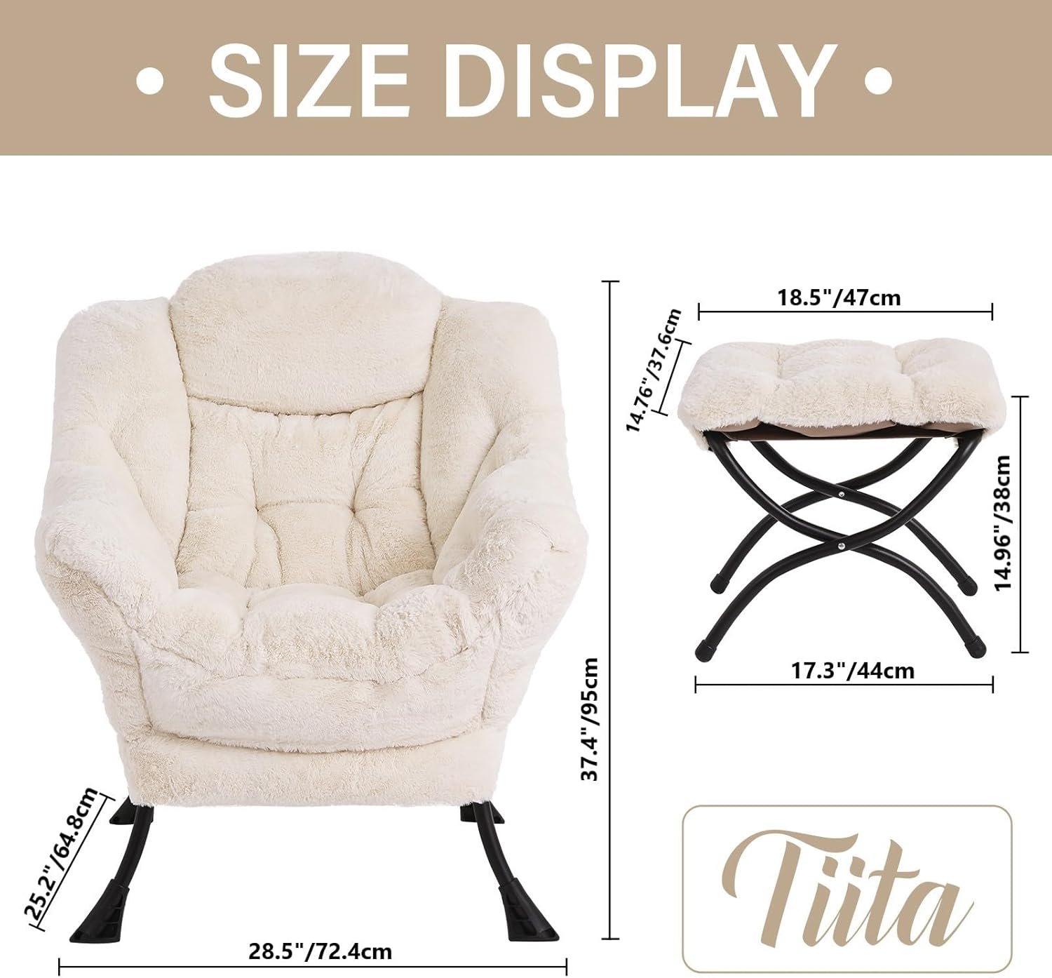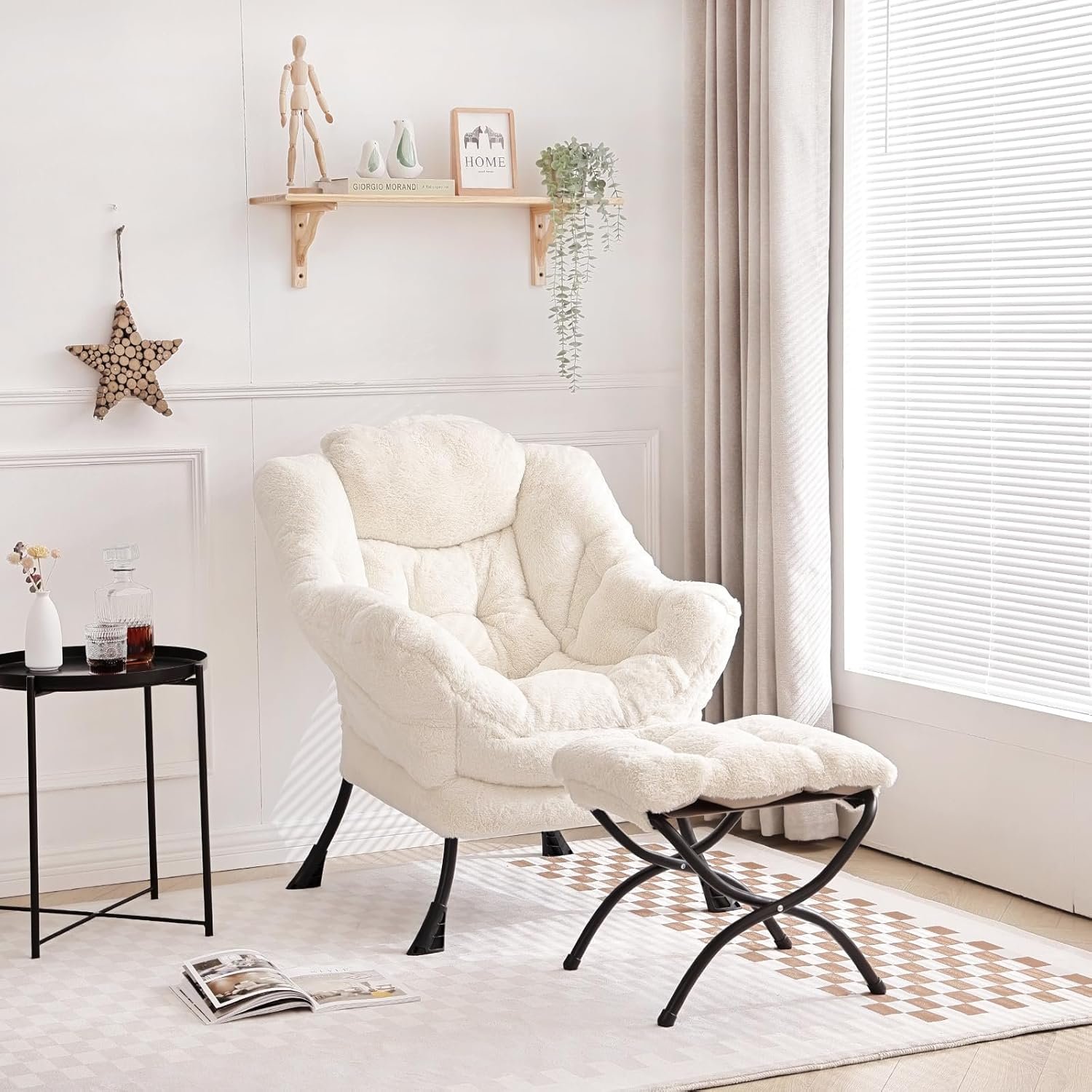 Tiita Lazy Chair with Ottoman, Modern Large Accent Lounge Armchair, Comfy Leisure Sofa Reading Chair with Footrest for Bedroom, Living Room, Dorm Rooms, Garden and Courtyard, Plush Beige