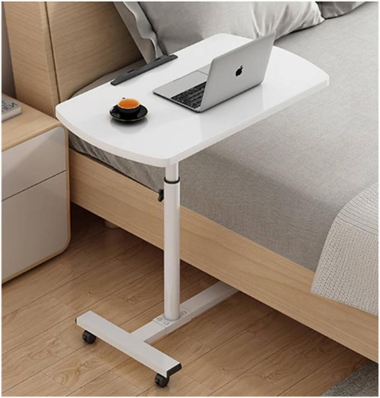 Tiltable Tabletop Bedside Workstation Laptop Desk,Adjustable Height Desk with Wheels – Versatile Over-Bed Table and Sofa Trolley for Laptops, Bedside Use, and Standing Workstation
