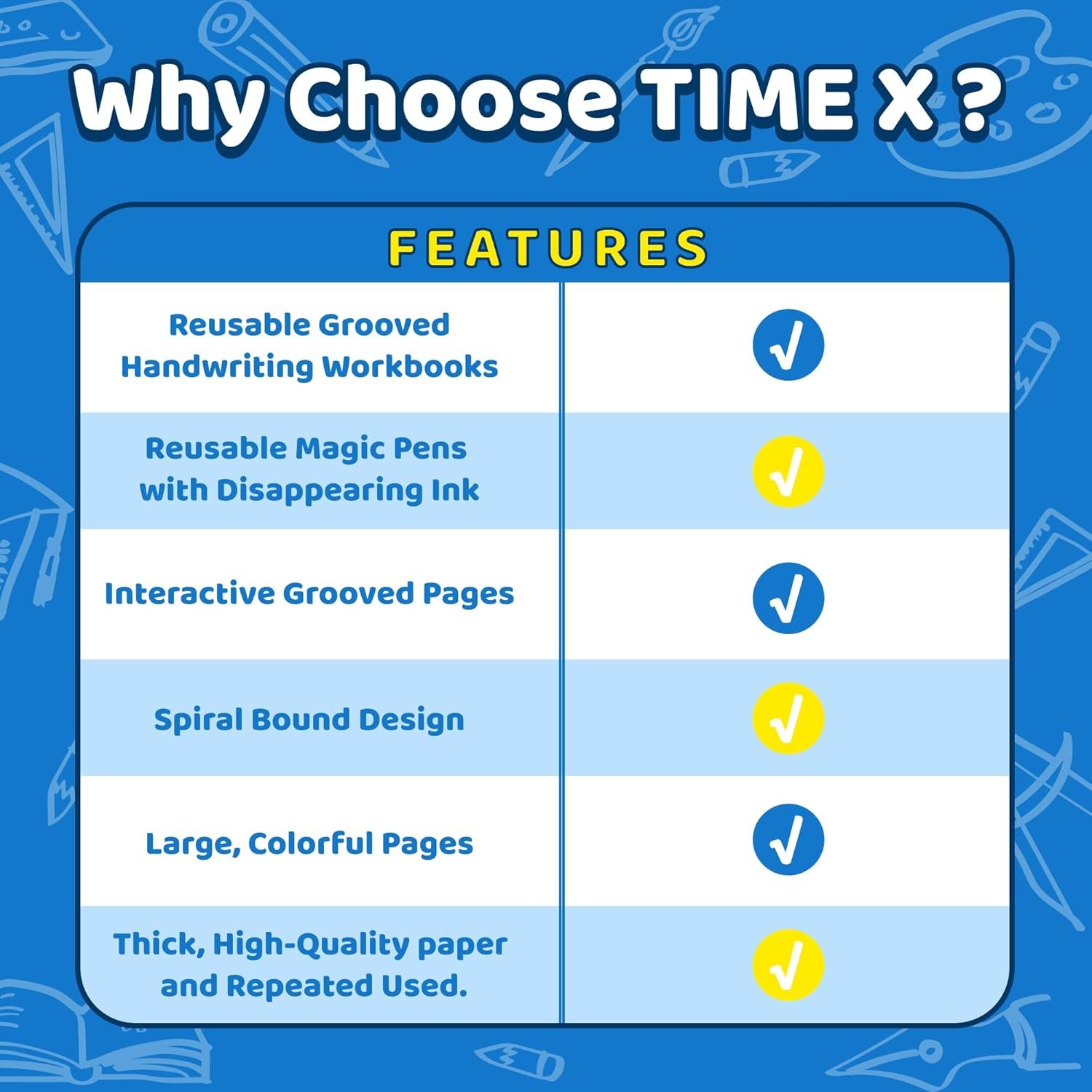 TIME X Reusable Magic Writing Paste copybooks provide an innovative and effective way for children to practice their writing skills while enjoying the process of learning. By using the auto-fade pen, they can repeatedly engage with the material, reinforcing their skills in a fun and interactive manner.