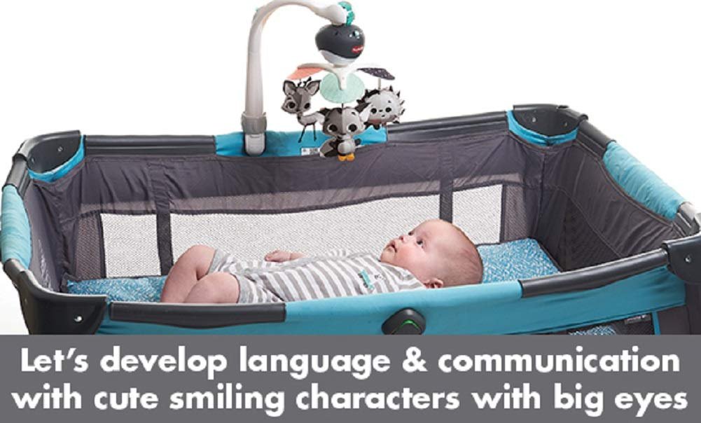 CHARMING AND ENGAGING DESIGN: Adorable characters with clearly defined designs and friendly, smiling faces on this baby mobile for play yards attract your baby’s attention while they learn and develop through play