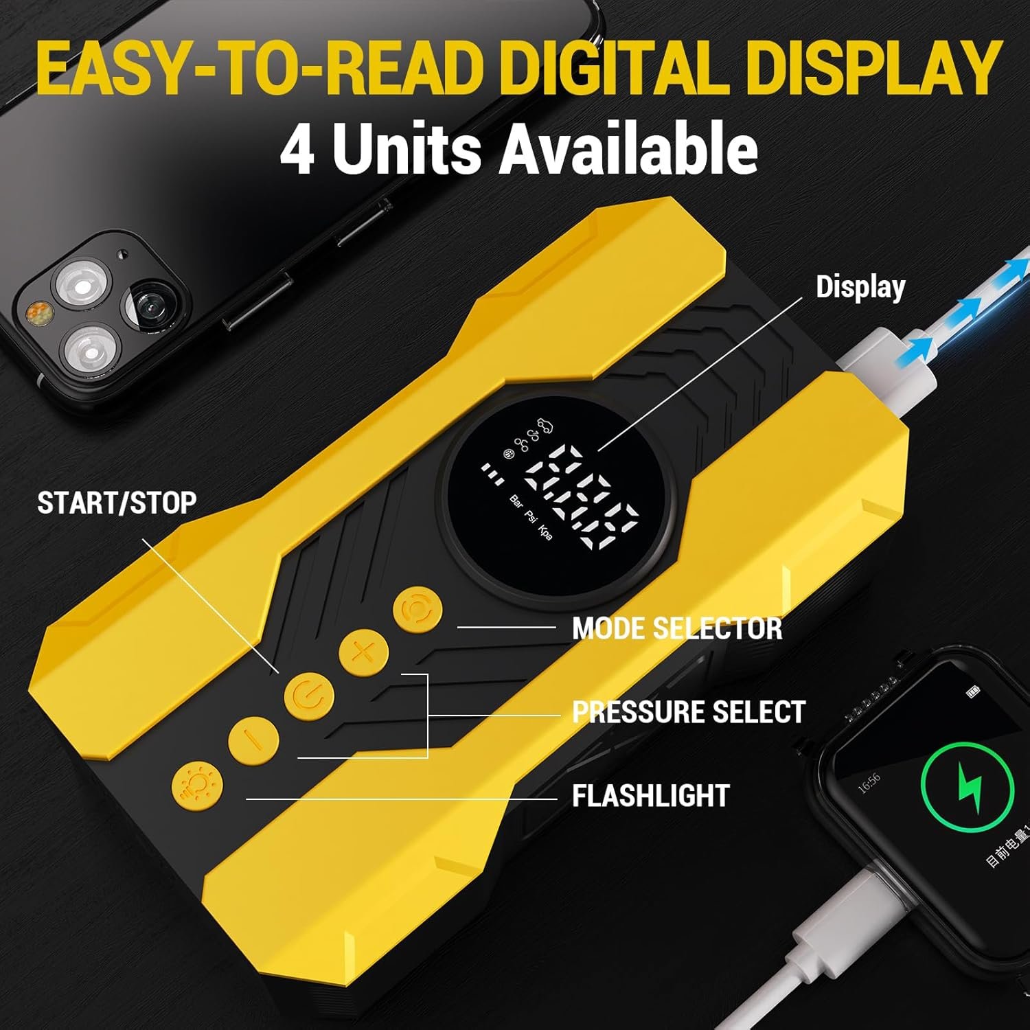 Customers find the air compressor easy to use and appreciate that it saves time and hassle. The device inflates car tires quickly and is compact enough to keep in the car. Customers praise its build quality, accurate digital pressure gauge, and powerful 200PSI capacity. The display is clear, and one customer notes the built-in light is perfect for emergencies at night. Customers consider it worth the money.