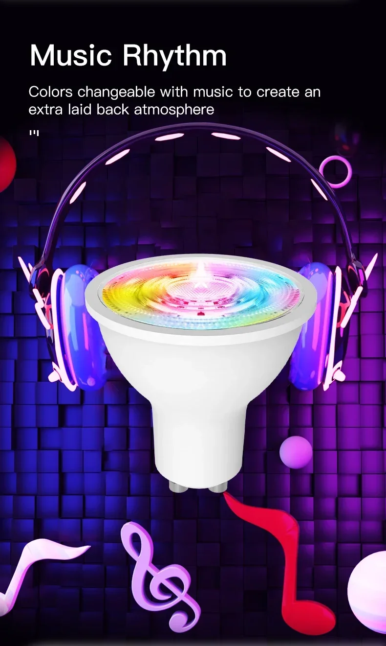 【Remotely Control】You can control GU10 bulb anywhere you like if you have an internet connection. When you are outside, you don’t have to check whether every lamp is off or not.