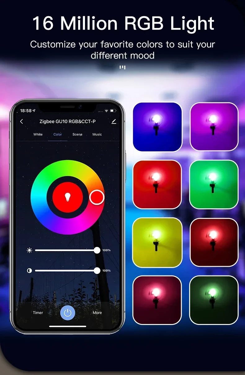 Group control, One mobile phone can control multiple light bulbs at the same time.