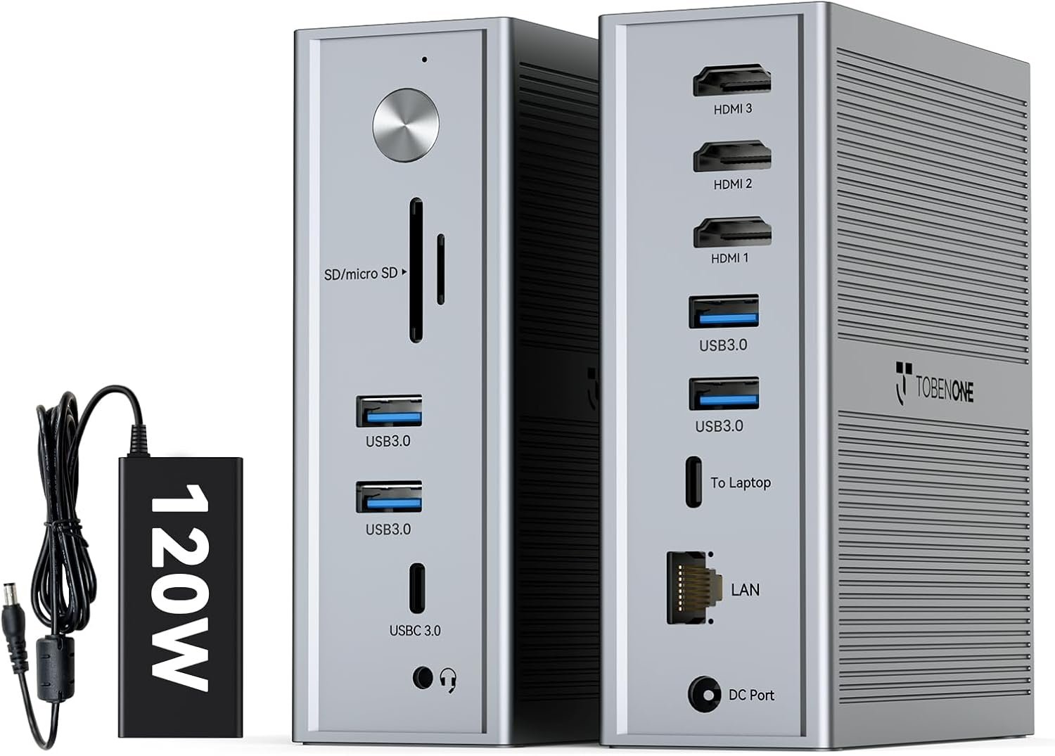 TobenONE DisplayLink Docking Station 3 Monitors, 14-in-1 USB C Triple Monitor Docking Station for M1 M2 M3 M4 MacBook/Mac mini, Windows, Chrome (3HDMI, 120W Power Supply, 5 USB, Ethernet, SD/Micro SD