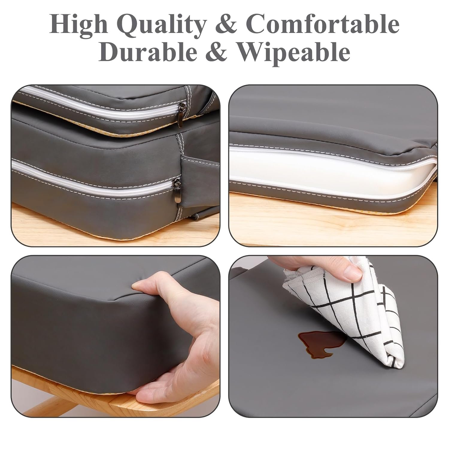 【Easy to Clean】Toddler booster seat for kitchen chair is made of high-quality waterproof PU synthetic leather, which is easy to clean and can be wiped clean with a damp towel. The toddler booster seat for dining table features a zipper design for easy removal and thorough cleaning.