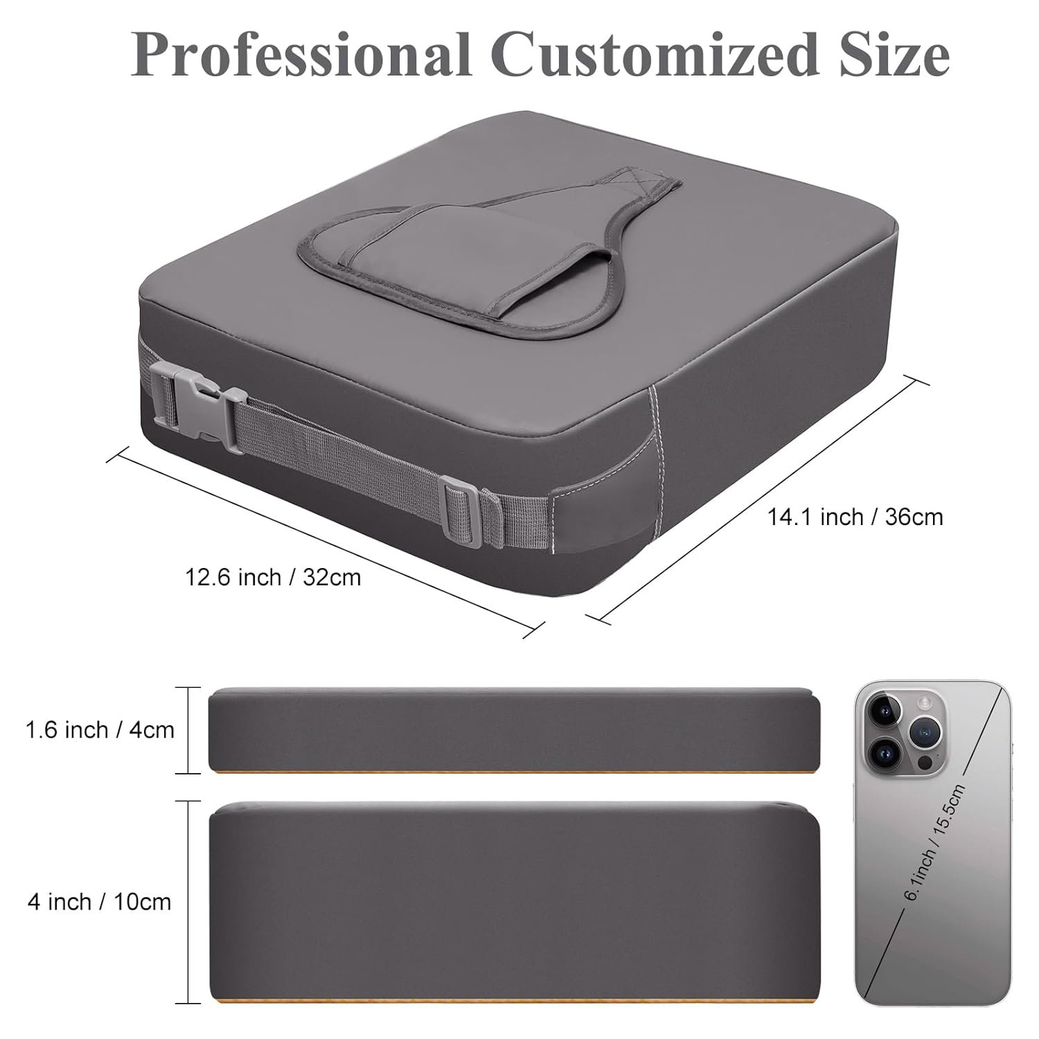 【Booster Seat Suitable Size】The baby booster seat has a backrest size of 14.1×12.6 x 1.6 inches and a cushion size of 14.1 x 12.6 x 4 inches, specifically designed for most dining seats. At the same time, the length of the bottom seat belt is appropriately increase, so the cushion can be better fixed on the most dining chair.
