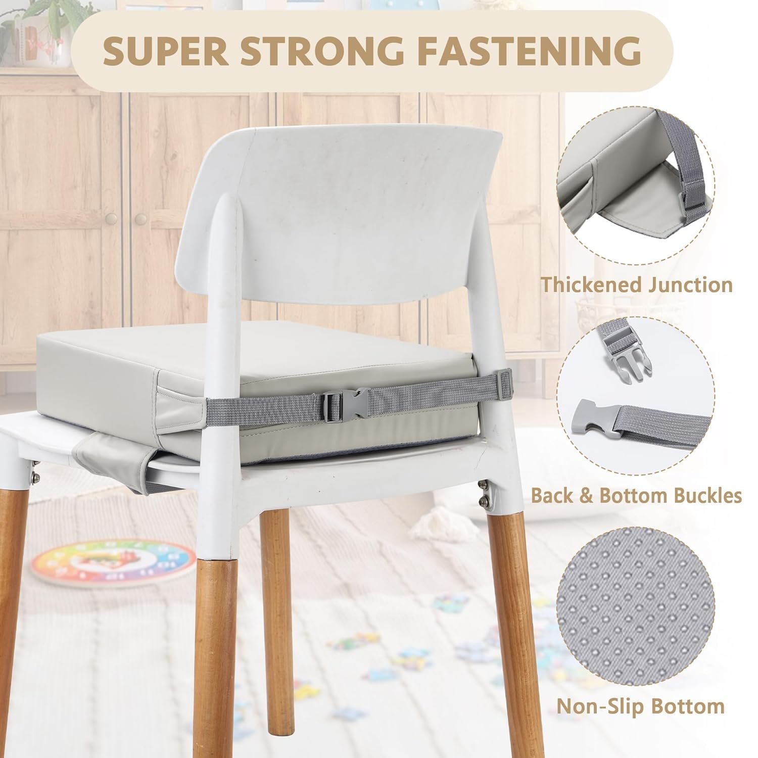 Toddler Booster Seat for Dining Table (PU Material),Portable Kids Booster Seat with Safety Buckles, High Cushion for Travel with Non-Slip Bottom