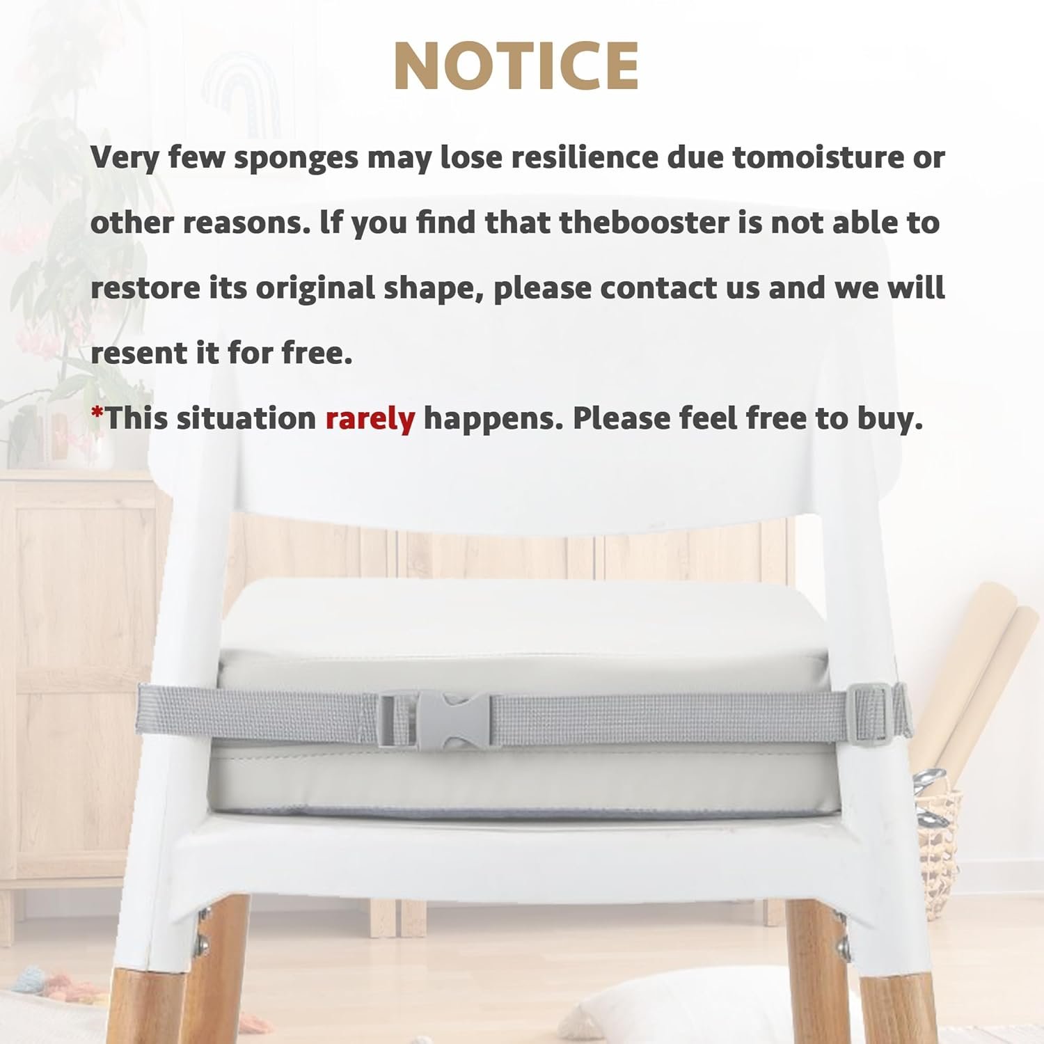 【SAFE AND ADJUSTABLE】- The Booster seat for dinning table consists of two straps. An adjustable strap with a buckle is tied under the chair, and the other strap is directly tied to the back of the chair, so that the booster can be well fixed on the chair. In addition, the bottom of the seat cushion adopts a non-slip design, which further prevents the seat cushion from moving and ensures the safety of the child.
