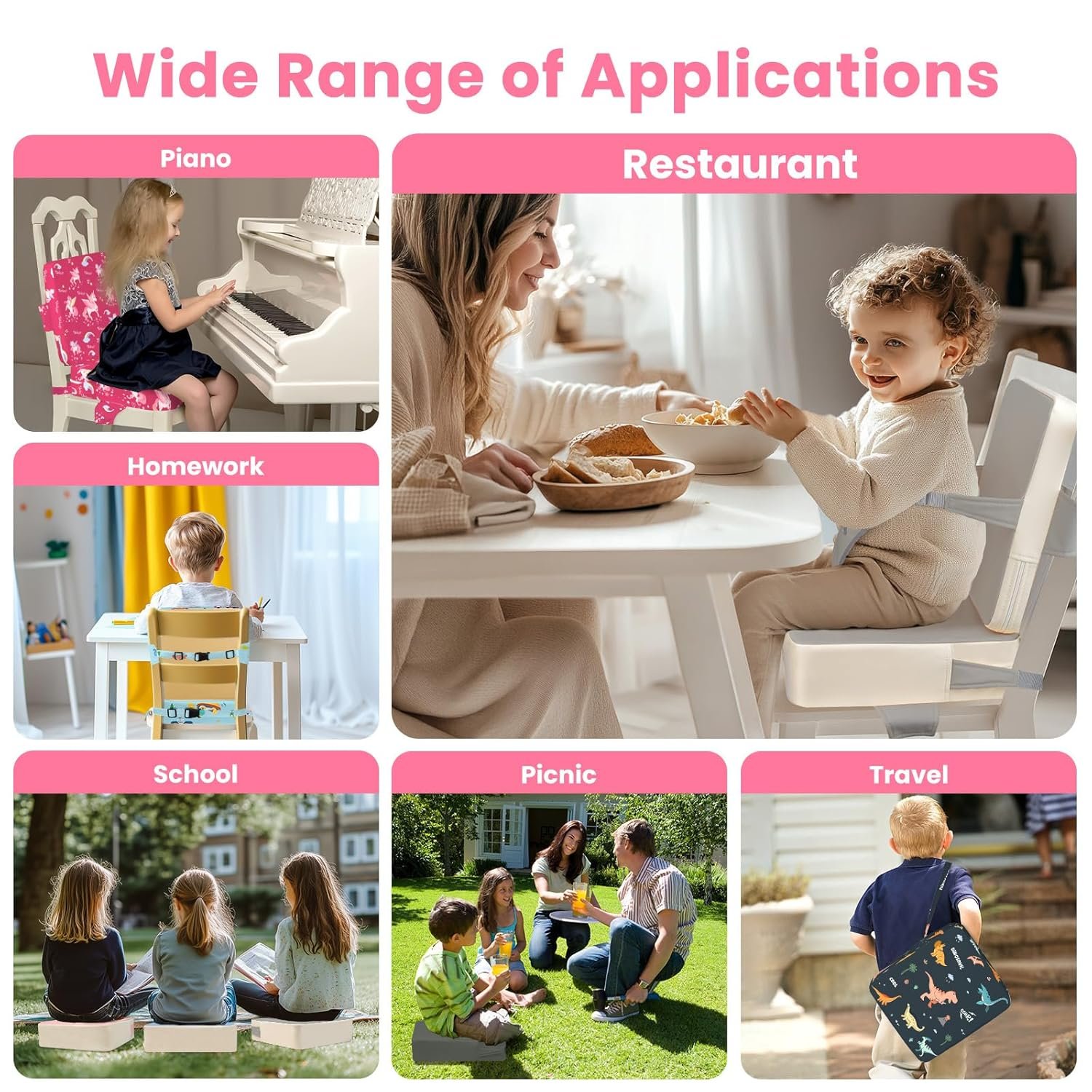 Versatile Usage: Lightweight and portable, our booster seat is not only ideal for everyday use at home, but also for on-the-go activities like camping, dining out and even sunbathing!