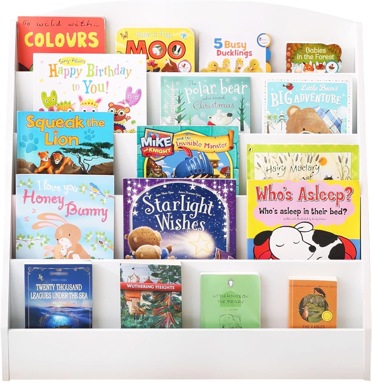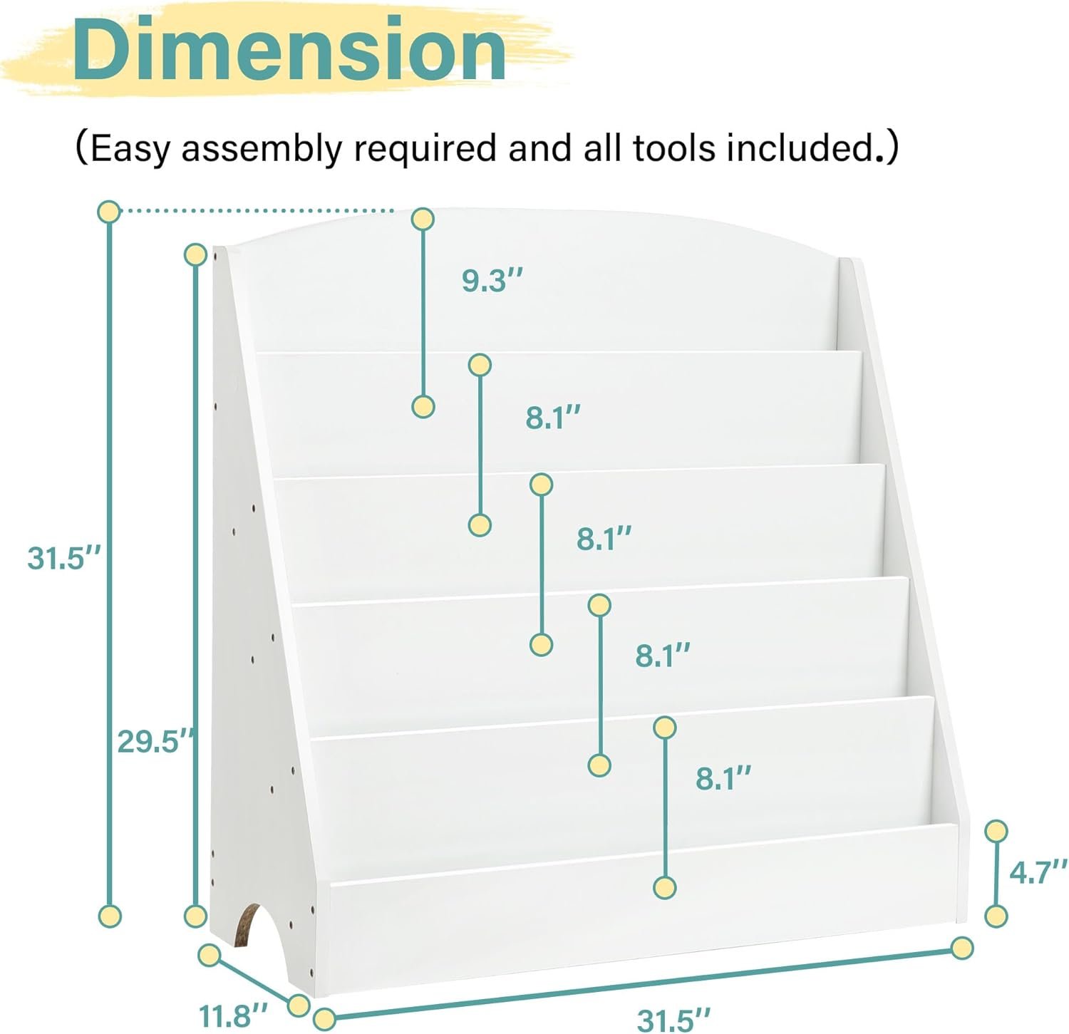 【STIMULATES CURIOSITY】- At 31.5″ x 12″ x 31.5″ (L x W x H), this white book shelf has a right height for children, allowing them to easily view and pick up their favorite books. Books can be displayed by front cover instead of the spine, making it easier for kids to choose books, fueling their love for reading.🪄📚