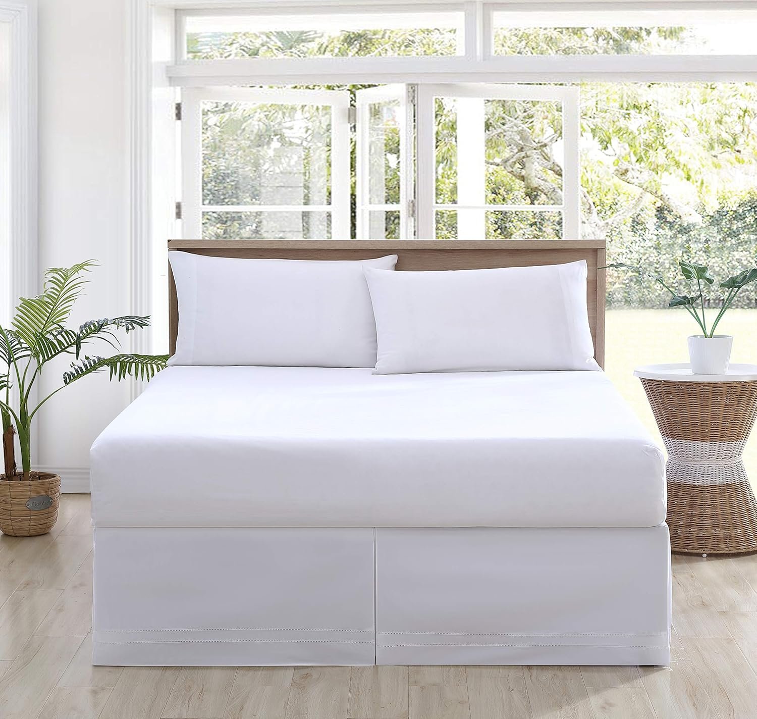 Tommy Bahama – Queen Bedskirt, Soft Cotton Bedding, Coastal Inspired Room Essentials (Solid Pleated White, Queen)