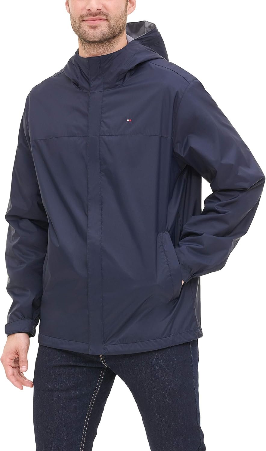 Tommy Hilfiger Men’s Lightweight Breathable Waterproof Hooded Rain Jacket