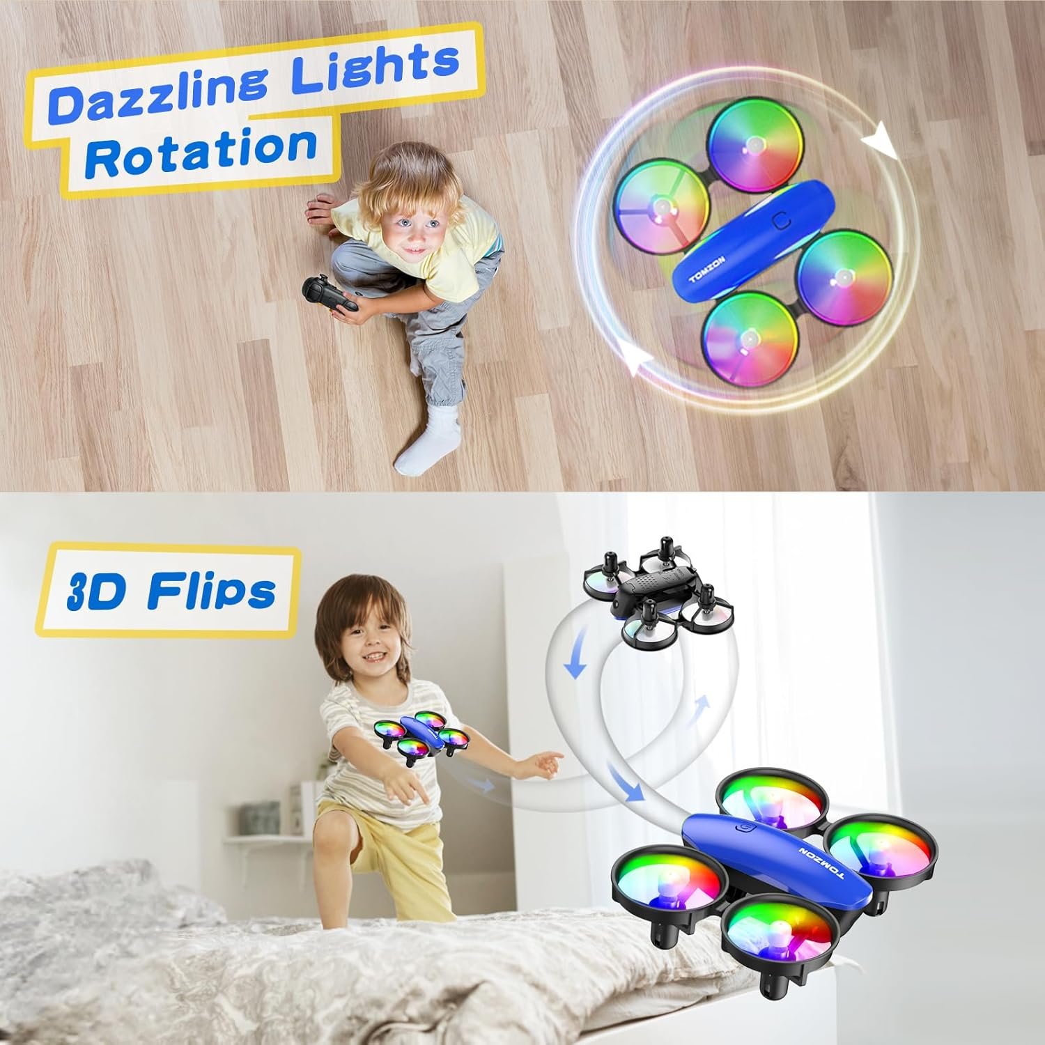 【Mutli-features, Fun to Play】The drones for kids are able to do 𝟑𝐃 𝐟𝐥𝐢𝐩𝐬, 𝐡𝐢𝐠𝐡-𝐬𝐩𝐞𝐞𝐝 𝐚𝐮𝐭𝐨-𝐫𝐨𝐭𝐚𝐭𝐢𝐨𝐧, 𝐚𝐧𝐝 𝐜𝐢𝐫𝐜𝐥𝐞 𝐟𝐥𝐲. With these fun features, you can put on a drone stunt show.