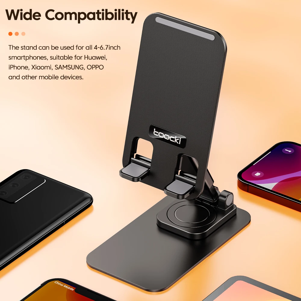 Toocki 360 degree Rotatable Adjustable Phone Holder Anti-skid Folding Storage Design Metal Phone stand For All Phablet Phones