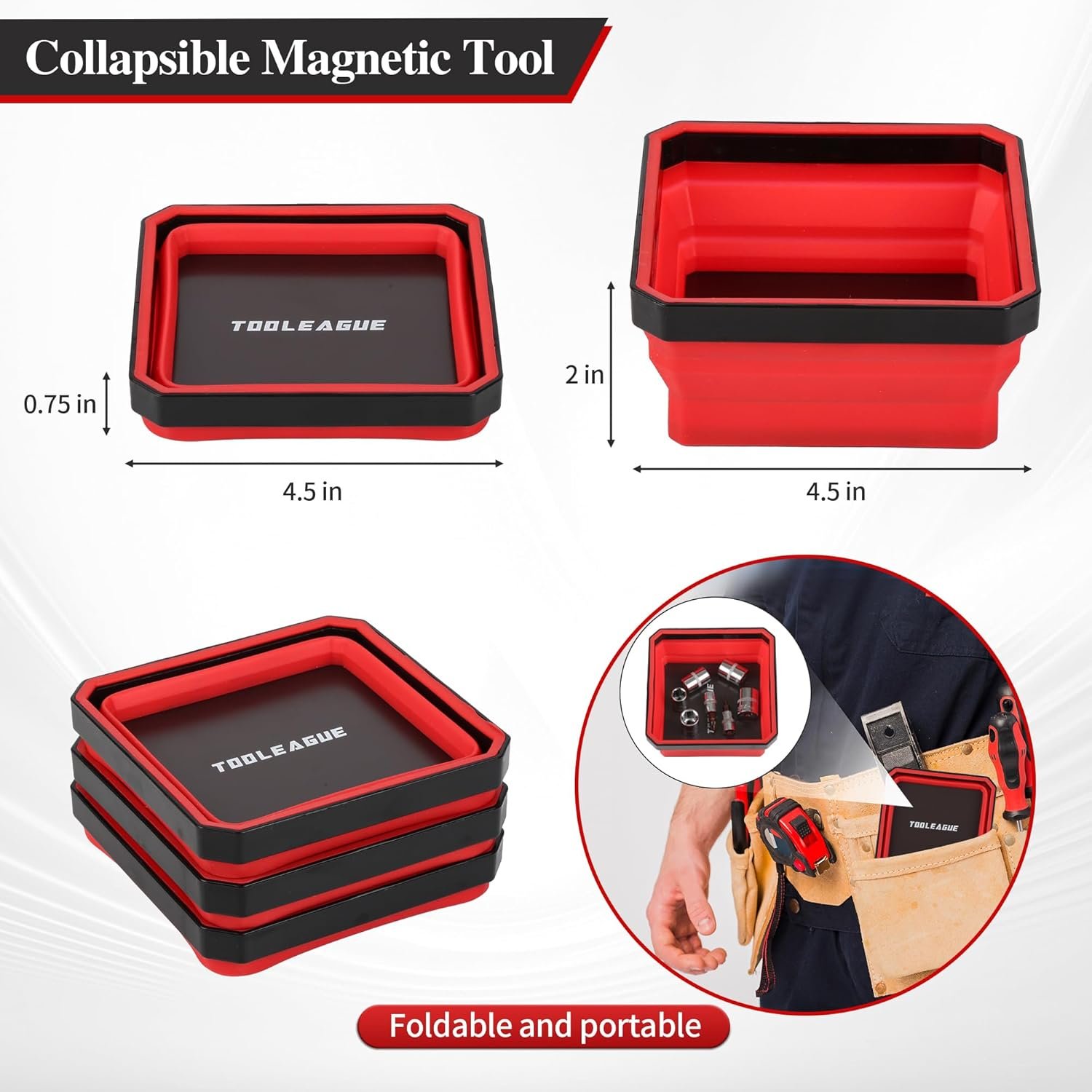 Wide Applications:The tool tray organizer measures approximately 4.5 x 4.5 x 0.75 inches(in folded position), with ample storage space, perfect for holding screws, bolts, nuts, washers, small metal tools and parts, helping to keep your work area tidy, clean and organized. Also great for DIY or professional auto technicians, mechanics, engineers, carpenters, plumbers, hobbyists, etc.
